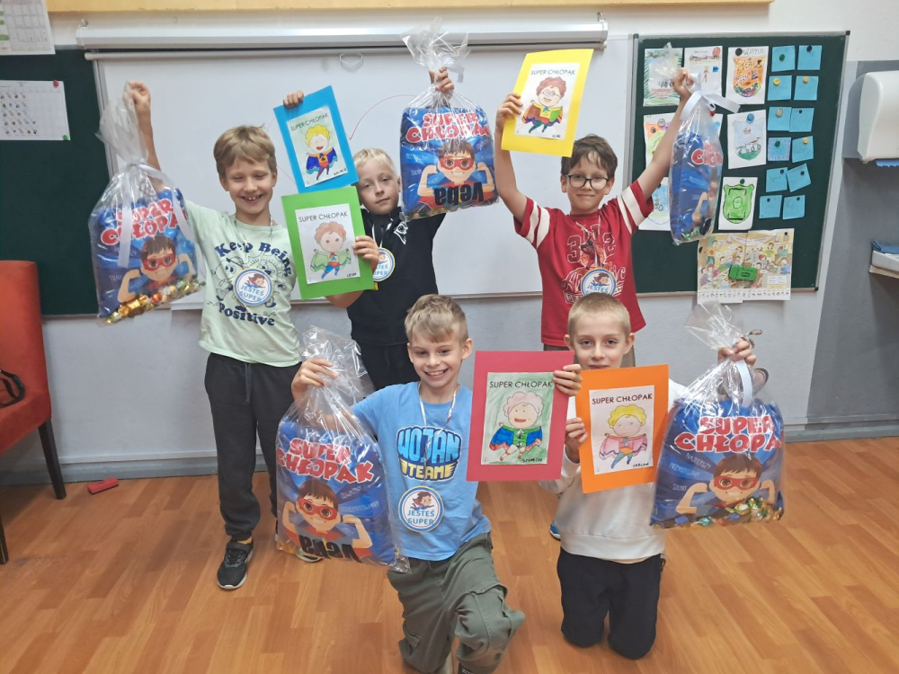 W naszej klasie 2b świętowaliśmy Dzień Chłopaka! Dziewczynki przygotowały dla chłopców wspaniałe prezenty, a także wykazały się talentem artystycznym, tworząc ich portrety. Na zakończenie tej wyjątkowej uroczystości, nasi wspaniali chłopcy zostali nagrodzeni symbolicznymi medalami z napisem: "Jesteś Super!' To był dzień pełen radości i uśmiechu!