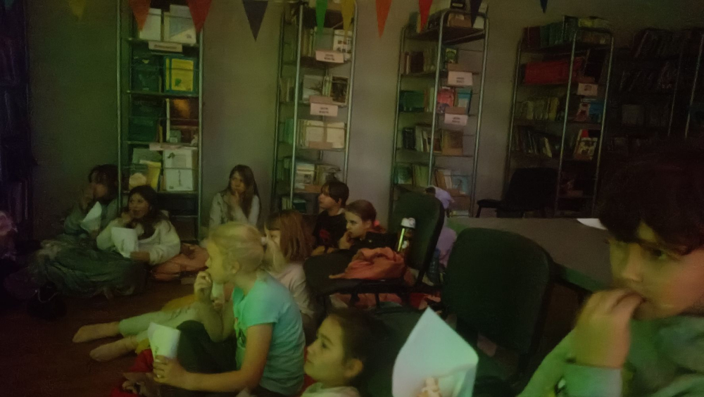 Spotkanie rozpoczęło się od projekcji filmu "Tajemnica pociągu". Film jest adaptacją książki z popularnego cyklu "Biuro detektywistyczne Lassego i Mai". W trakcie seansu uczniowie zajadali popcorn, umieszczony we własnoręcznie przygotowanych, ozdobionych okolicznościowymi napisami pudełkach.