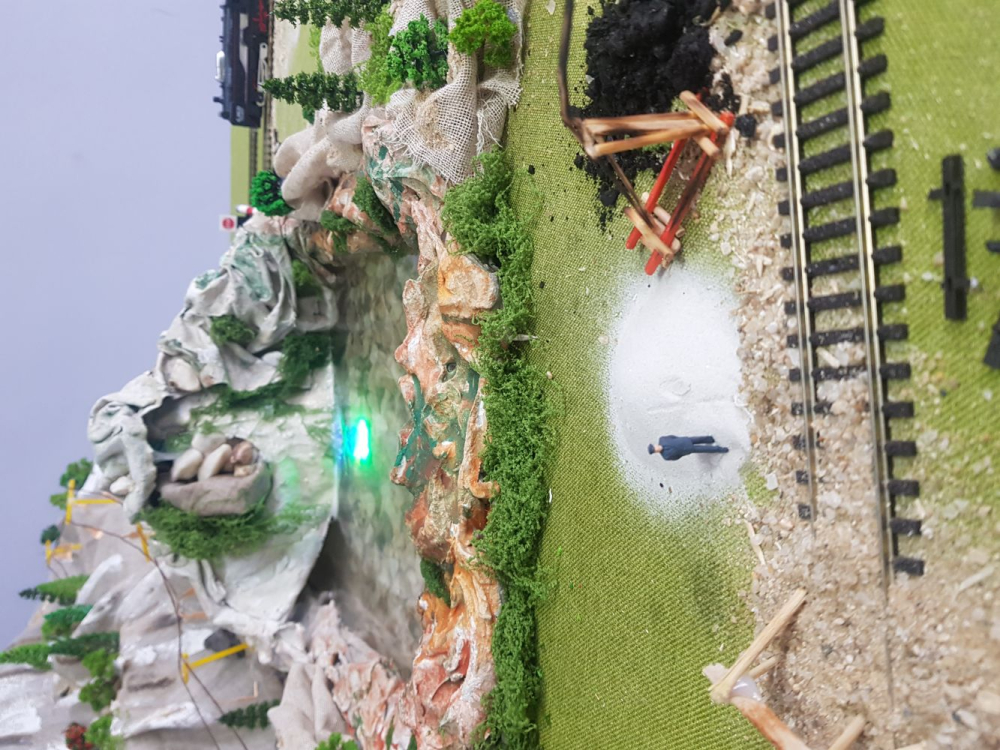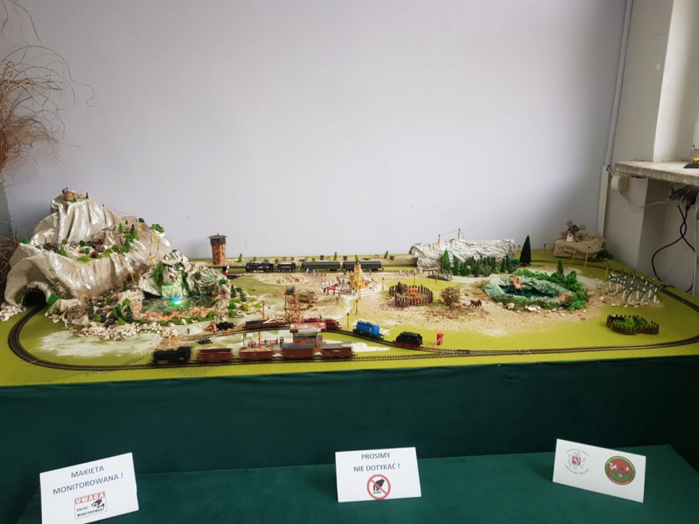 Podczas ferii zimowych na terenie naszej szkoły powstała makieta kolejki elektrycznej w otoczeniu modeli budowli, przyrody, ludzi i zwierząt.