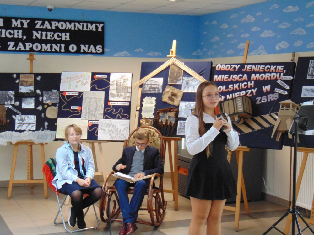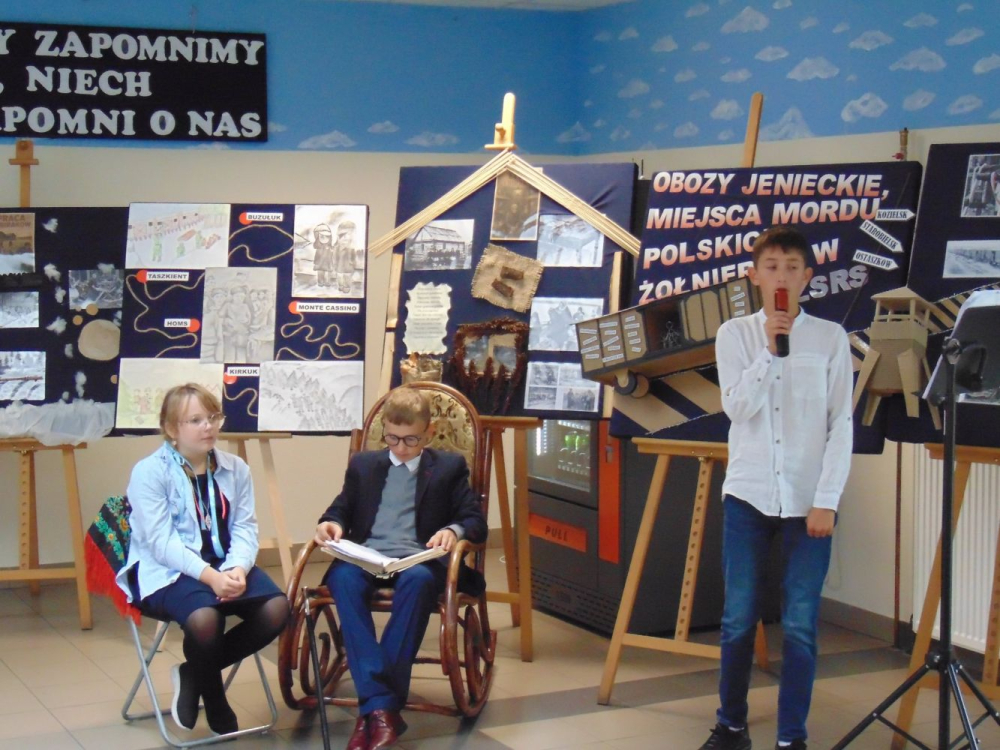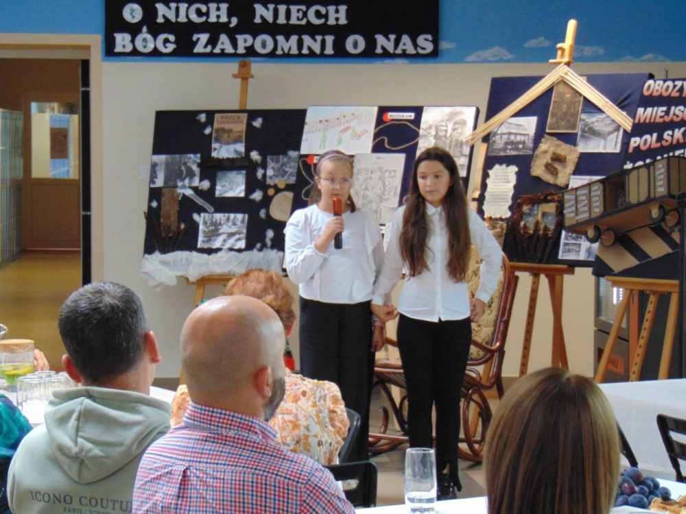 W godzinach popołudniowych w szkole sie uroczyste spotkanie z charakterystycznymi gośćmi: Panem Wacławem Kwiecińskim oraz Panem Alfredem Nowickim, którzy przybliżyli zebranym historię Sybiraków.