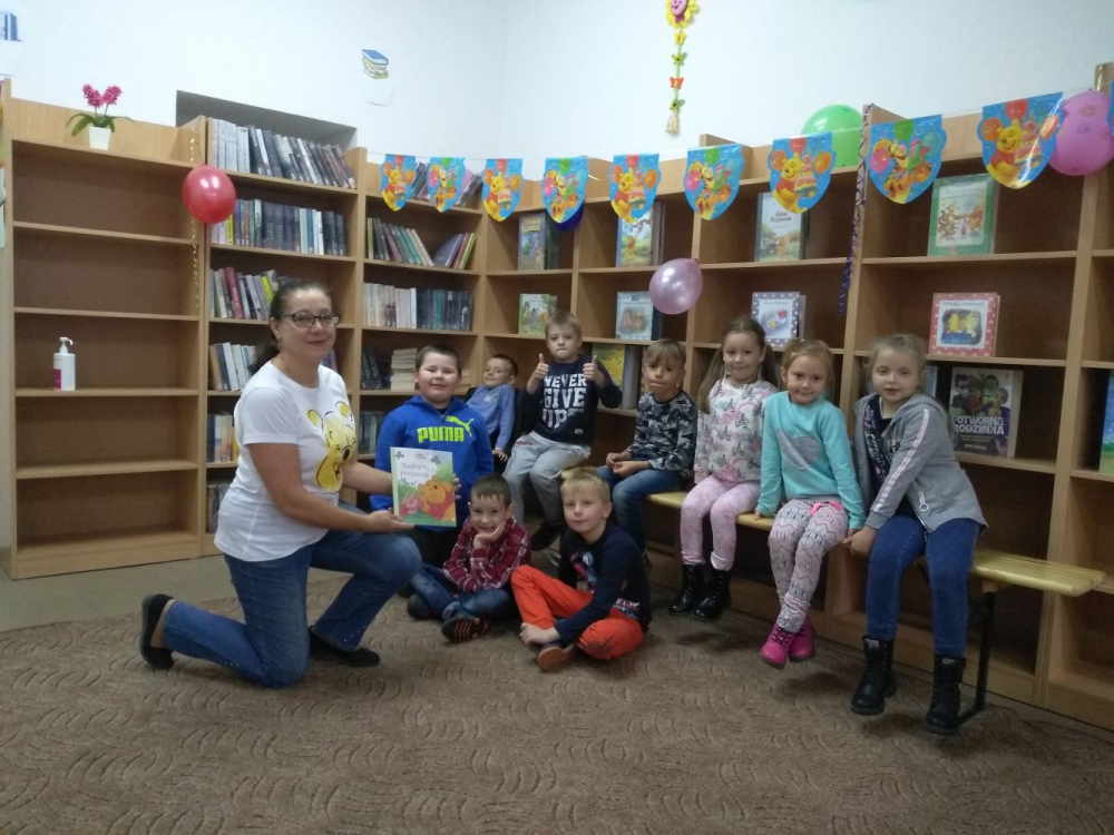 Dzieci na spotkaniu wysłuchały opowiadania o Kubusiu i jego najlepszym przyjacielu Prosiaczku. Odgadywały inne postacie związane z naszym solenizantem np. Krzyś, Królik, Tygrysek, Maleństwo, Sowa czy Kłapouchy. Próbowały słodkiego miodku, ulubionego dania Kubusia oraz pyszne babeczki z czekoladą. Układały puzzle z Kubusiem i jego przyjaciółmi. Najwięcej śmiechu było podczas przyklejania ogona Kłapouchemu, który zawsze go gubił. Nie zawsze dzieciom się to udało, ponieważ miały zasłonięte wtedy oczy. Na zakończenie otrzymały torebeczki z ilustracją Kubusia i Prosiaczka z kubeczkiem miodku w środku.
