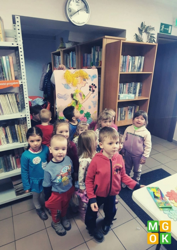 Dla dzieci przygotowane zostały zajęcia pod hasłem "Pani Wiosna". Dzieci zapoznały się z zasadami korzystania z biblioteki, obejrzały ciekawe - interaktywne książeczki skierowane do najmłodszej grupy dzieci. Na zakończenie wspólnie wykonaliśmy portret Pani Wiosny.