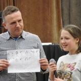 Wszyscy uczniowie zostali zaangażowani w stworzenie historii komiksowej o tematyce związanej z Lubawką. Stali się autorami komiksów, które potem prezentowali przed zgromadzoną publicznością. Jednoosobowe jury w postaci pana Zbigniewa Masternaka wskazało te najlepsze, które nagrodzone zostały pamiątkowymi dyplomami oraz celującymi i bardzo dobrymi ocenami z języka polskiego. Z napisaniem ( i narysowaniem) komiksu najlepiej poradzili sobie : Marcel Olszewski, Julian Kraszewski, Julia Fedoruk, Kasper Wasiulewski, Nikola Garnkowska oraz Karolina Krok-Orzechowska. Na zakończenie spotkania wszyscy uczestnicy otrzymali od zaproszonego gościa autografy. Radośni i zadowoleni z zajęć uczniowie wraz z opiekunami wrócili do szkoły. Dziękujemy za czas spędzony razem - za kreatywność i ogromne zaangażowanie ze strony dzieci.
