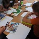 Spotkanie poświęcone było książce, która obecna jest w życiu każdego chyba człowieka. Dzieci przyniosły ze sobą swoje ukochane książeczki, które prezentowały innym uczestnikom i troszkę o nich opowiadały. Po zaplanowanych zabawach rysowały okładki swoich książeczek, które trafiły do "Naszej szafy z ...książkami" po to, by inne dzieci zobaczyły co warto przeczytać. Ponieważ spotkanie miało podkreślić Święto Książki nie mogło zabraknąć tortu - pojawił się on na zakończenie i wszystkim bardzo smakował . W galerii można zobaczyć jak razem spędziliśmy ten sobotni czas.