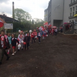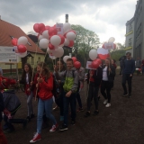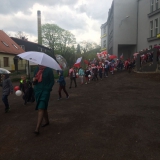 Niestety na początku marszu nie sprzyjała nam pogoda. Padał nieprzyjemny desz. Uczniowie jednak dzielnie pokonali trudności w dojściu na rynek miejski. Wysłuchaliśmy ważnych informacji, które przekazali nam uczniowie klas IV-VI. Marsz miał charakter upamiętniający Święto Konstytucji Trzeciego Maja. Odbył się dzisiaj ponieważ trzeci maja wypada w tym roku w czasie wolnym od zajęć w szkole.