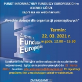 Spotkanie, w formie webinarium, odbędzie się na platformie internetowej ZOOM. Dla sprawnej organizacji prosimy o zgłaszanie się na spotkanie za pośrednictwem poczty elektronicznej na adres: pife.jeleniagora@dolnyslask.pl. Na zgłoszenia czekamy do 21.03.2021 r. Po rejestracji otrzymacie Państwo na swój adres e-mailowy indywidualny link do spotkania. W przypadku osób z niepełnosprawnościami prosimy o poinformowanie organizatora o swoich potrzebach. Umożliwi to przygotowanie odpowiedniej pomocy oraz zapewni sprawną obsługę spotkania.