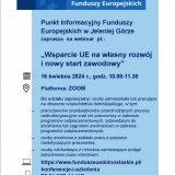Punkt Informacyjny Funduszy Europejskich w Jeleniej Górze oraz Karkonoska Agencja Rozwoju Regionalnego S.A. w Jeleniej Górze zapraszają na webinarium pt. "Wsparcie UE na własny rozwój i nowy start zawodowy".
