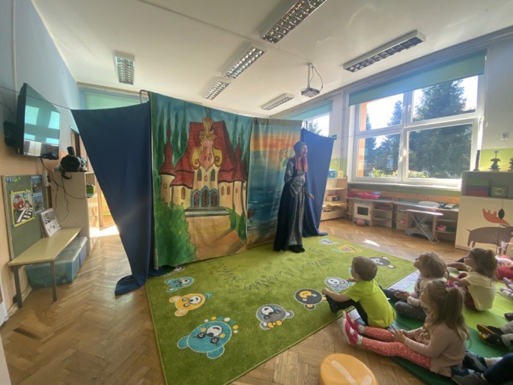 Dziś w naszym przedszkolu gościliśmy aktorów z teatru KRAK - ART z Krakowa. Była to teatralna adaptacja bajki Aleksandra Puszkina z oryginalną scenografią oraz przepięknymi strojami . To pełne humoru przedstawienie o zachłannej rybaczce i poczciwym rybaku, którzy mieszkali w ubogiej chacie nad brzegiem morza. Opowieść uczy najmłodszych szacunku i uczciwości, przestrzega przed zachłannością.