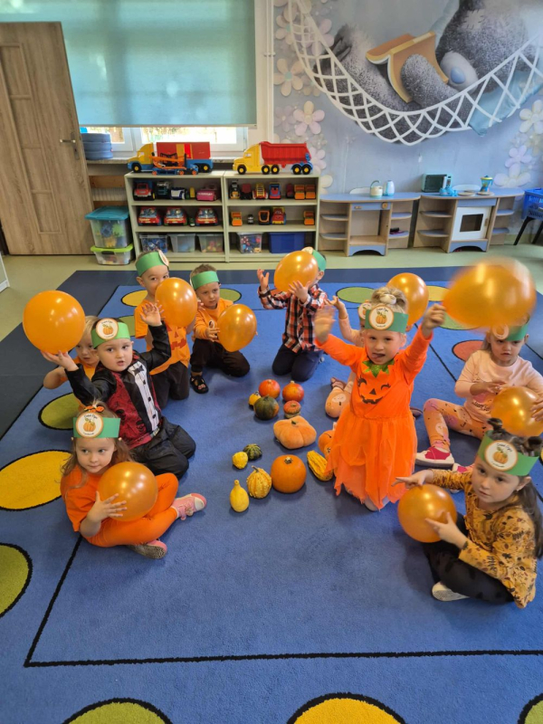 Dnia 31 października 2025 roku w Przedszkolu w Chełmsku Śląskim obchodzono wesoły i pełen atrakcji Dzień Dyni. Dzieci przyszły ubrane w pomarańczowe stroje i z uśmiechem uczestniczyły w licznych konkursach i zabawach związanych z królową jesieni  dynią.