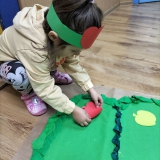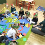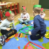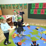 Obchody dnia jabłka w przedszkolu rozpoczęliśmy od rozmów na temat jego wyglądu, koloru, wielkości, kształtu, smaku. Kolejne zabawy w tym dniu dotyczyły też jabłek, były to m.in. zabawy zręcznościowe i ruchowe. Nie zabrakło poczęstunku po którym dzieci przystąpiły do wykonania pracy plastycznej. Dzień jabłkowy - bardzo udany - zachęcamy wszystkich do jedzenia jabłek bo to źródło zdrowia i witam.