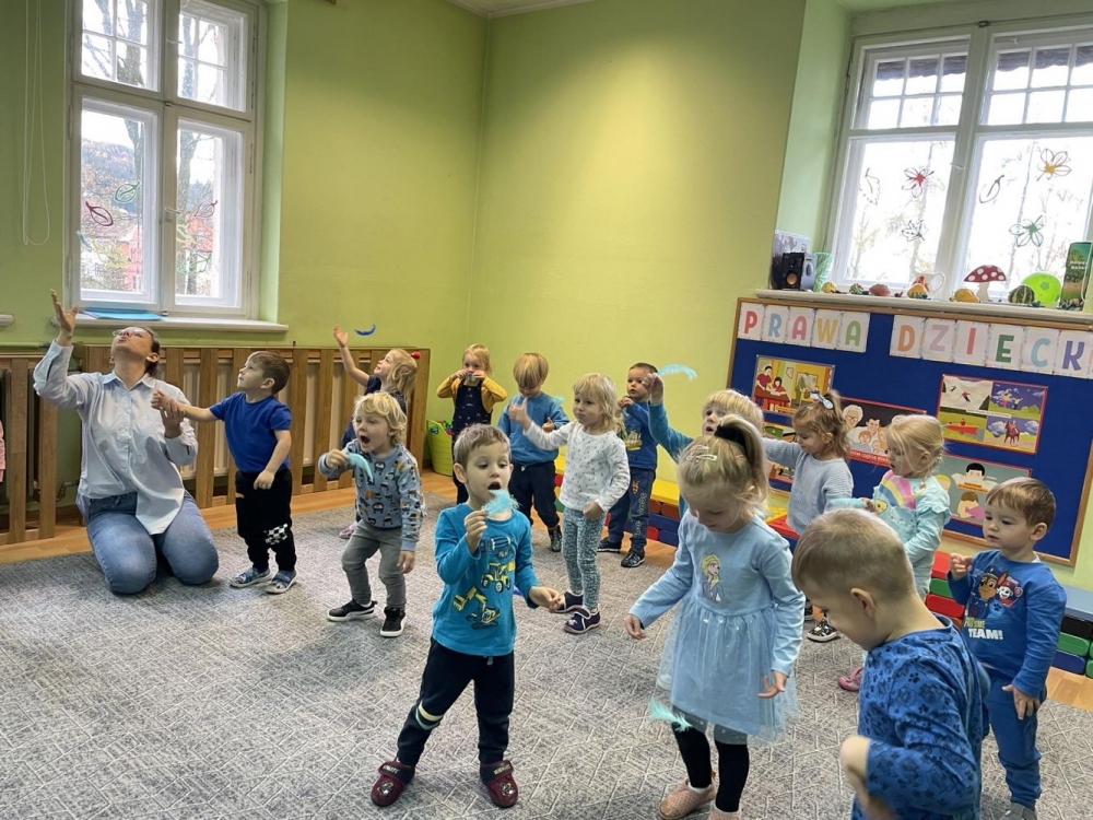 brały udział w zajęciach dydaktycznych poświęcone tej tematyce. Dzieci dzieliły się swoimi własnymi spostrzeżeniami na temat powodów do radości i uśmiechu wśród dzieci oraz o tym, co może powodować, że mały człowiek jest smutny i co mu sprawia przykrość. Dzieci wiedzą już, że mają prawo do radości, uśmiechu, zabawy, spokojnej nauki i ciekawego poznawania otaczającego nas świata. Taki dzień jest także okazją do tego, abyśmy My dorośli nigdy o tym nie zapominali. My, jako przedszkole wierzymy, że dobrze ugruntowana wiedza dziecka, poczucie jego własnej wartości oraz świadomość swoich praw da dzieciom dobre podstawy do bycia w przyszłości wspaniałym człowiekiem, rodzicem i obywatelem. Niech się wreszcie każdy dowie i rozpowie w świecie całym, że dziecko to też człowiek, tyle że jeszcze mały!