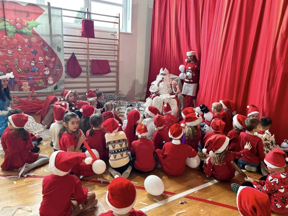 Dzisiaj nasze przedszkole odwiedził bardzo miły i długo oczekiwany gość. Miał czerwony strój, długą, białą brodę, dźwigał na plecach bardzo ciężki worek, a w nim prezenty. To nie mógł być nikt inny tylko MIKOŁAJ- niezwykle wesoły, rozmowny i chętny do wspólnej zabawy i tańca. Spotkanie przebiegało w bardzo radosnej i przyjaznej atmosferze. Przedszkolaki śpiewały Mikołajowi piosenki.