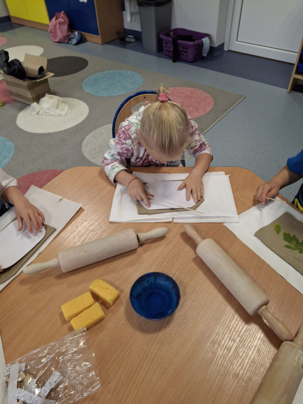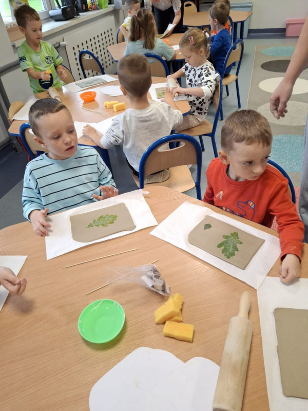 Samodzielnie wykonały patery w kształtach i zdobieniach nawiązujących do jesieni (liście). Dzieci z radością i zainteresowaniem uczestniczyły w warsztatach.