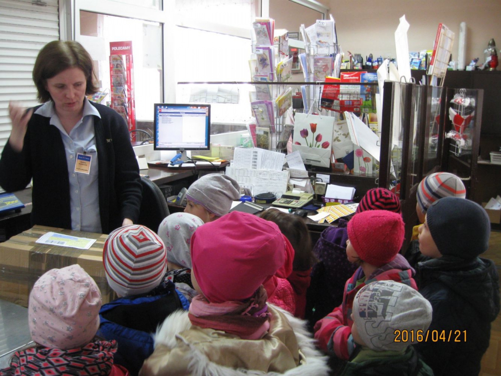 Podczas wycieczki Muchomorki odwiedziły Filię Urzędu Pocztowego w Lubawce. Dzieci dowiedziały się na czym polega praca na poczcie, poznały drogę listu od nadawcy do adresata. Odwiedziły pomieszczenia, w których waży się i nadaje listy oraz paczki. Oglądały także znaczki dostępne w sprzedaży. Na zakończenie z pomocą wychowawczyni wysłały list. W podziękowaniu wręczyły Paniom urzędniczkom życzenia oraz wydeklamowały wiersz. Na pamiątkę każde dziecko otrzymało widokówkę i zakładkę