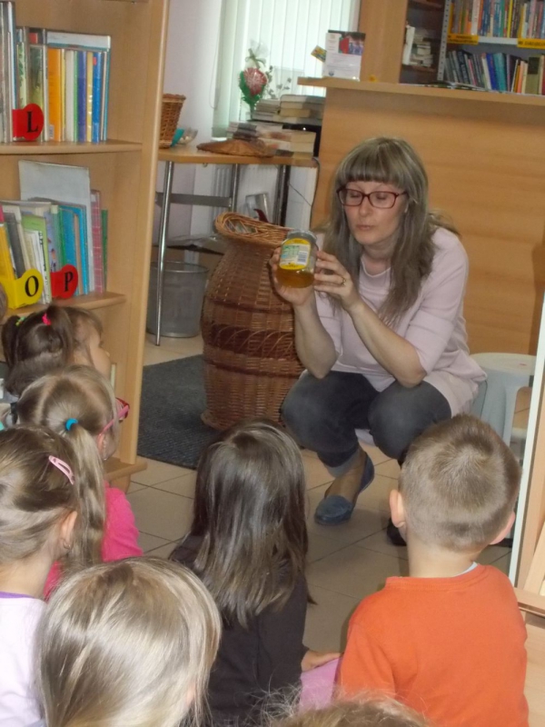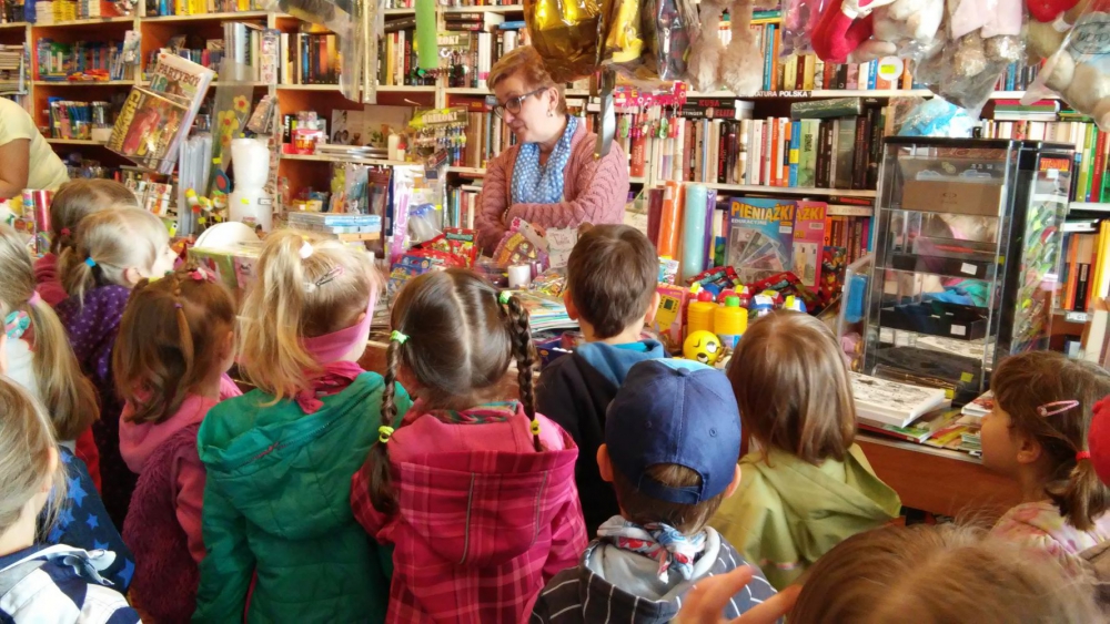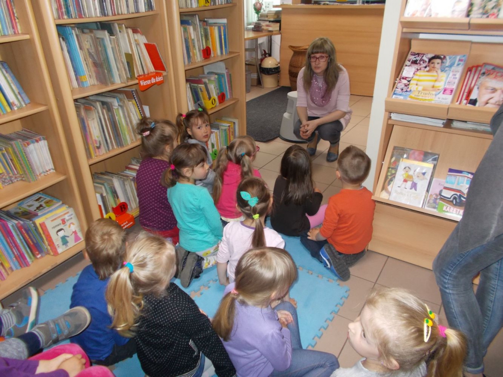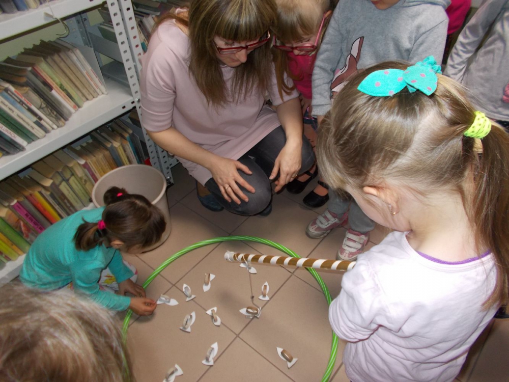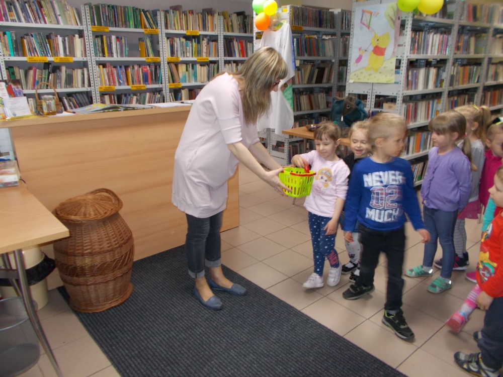 Rozbudzając zainteresowania czytelnicze Muchomorki wraz z nauczycielkami odwiedziły księgarnię i bibliotekę. Dzieci poznały różnicę między księgarnią a biblioteką. Uczestniczyły w bardzo ciekawych zajęciach bibliotecznych, podczas których podobnie jak bohaterowie popularnych bajek łowiły złote rybki, przebierały fasolę, zapełniały koszyczek dla chorej babci. Pani bibliotekarka przygotowała dla dzieci zagadki, czytała fragmenty bajek.