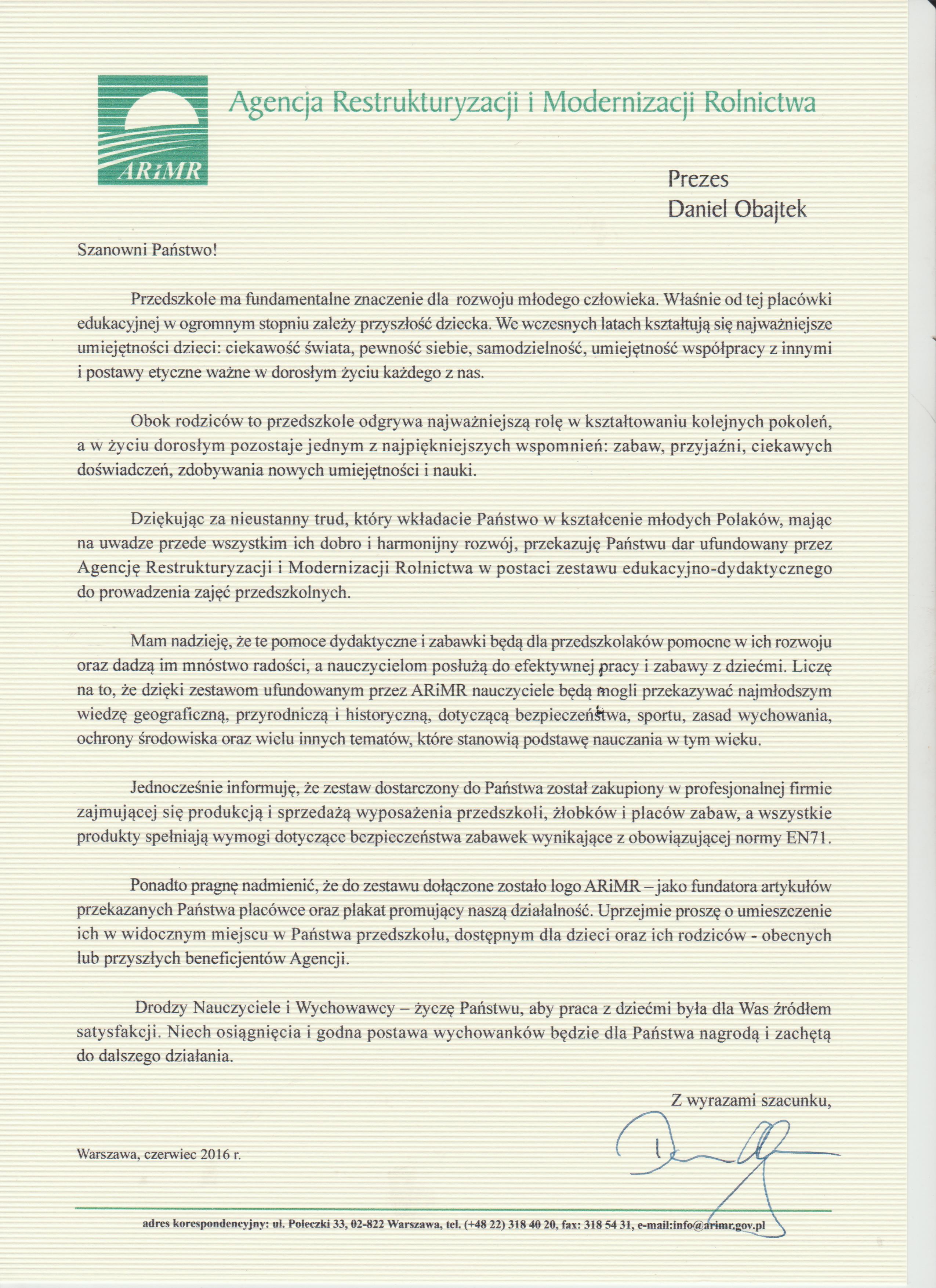 Nasze przedszkole odebrało z rąk prezesa w prezencie pokaźny, bogaty zestaw zabawek, gier i książek, które zostaną przekazane dzieciom - do wszystkich grup.