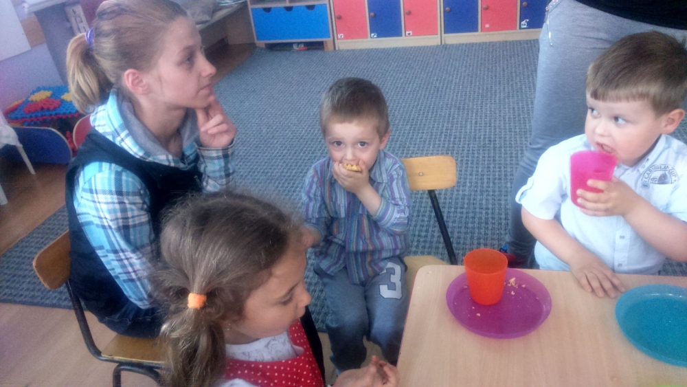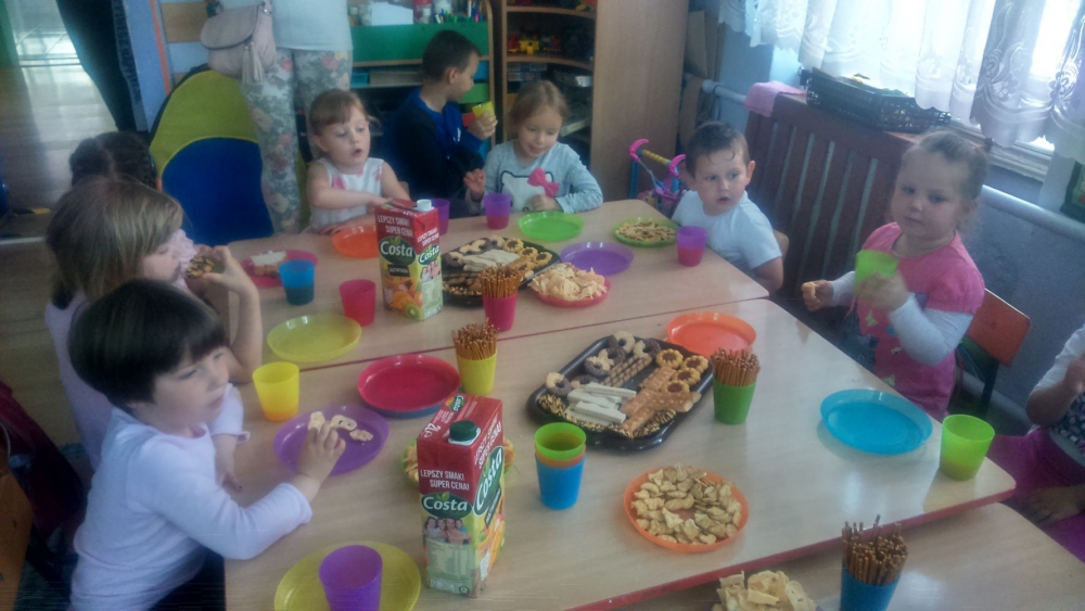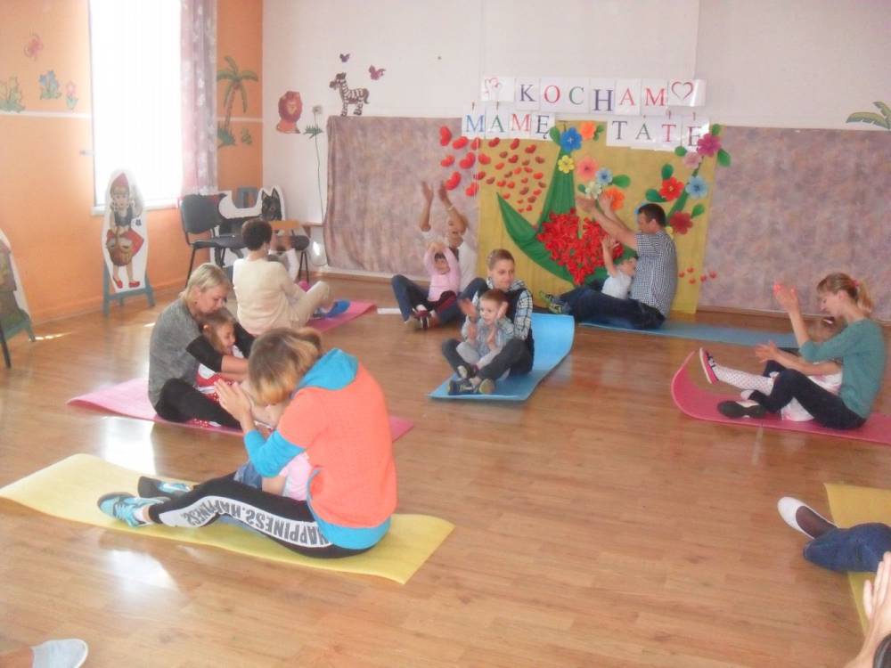 Rodzice i dzieci wzięli udział w zajęciach Metodą Ruchu Rozwijającego Weroniki Sherborne pt. "Baraszkowanie na dywanie- bawimy się razem". Mamy przygotowały dla swoich pociech słodki poczęstunek. Było milutko ....