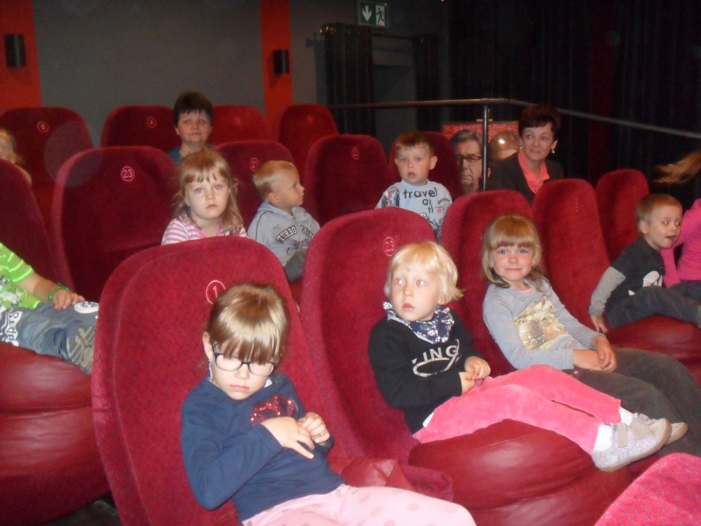 Dnia 15.06.2016 r. zorganizowano wycieczkę dla grupy Krasnoludki i Tańczące Nutki do Krzeszowa do kina "Za Rogiem". W kinie dzieci obejżały trzy bajki: "Parauszek", "Dwa koty i pies", "Pampalini". Po seansie filmowym dzieci miały okazję zwiedzić bibliotekę, gdzie wzięły udział w zajęciach bibliotecznych.