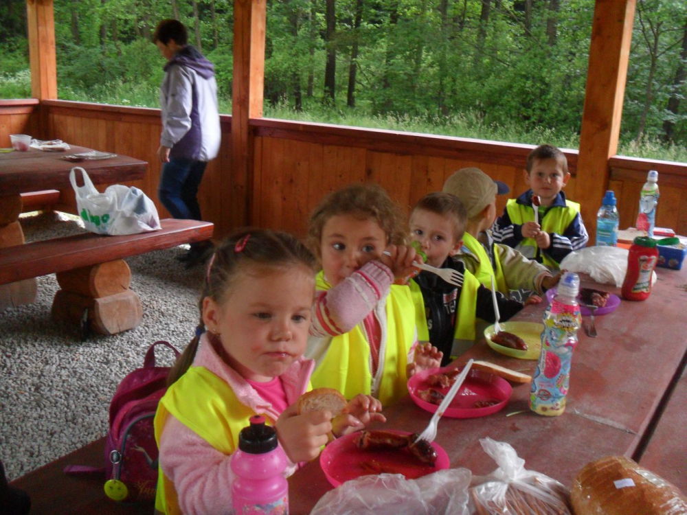 Z Krzeszowa przedszkolaki pojechały do Gorzeszowa na "Głazy Krasnoludków", gdzie czekało na nie ognisko i pieczenia kiełbasek przygotowane przez rodziców. Miło i przyjemnie wszyscy spędzili czas na łonie natury.