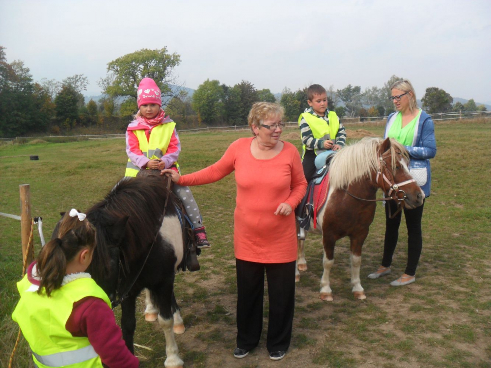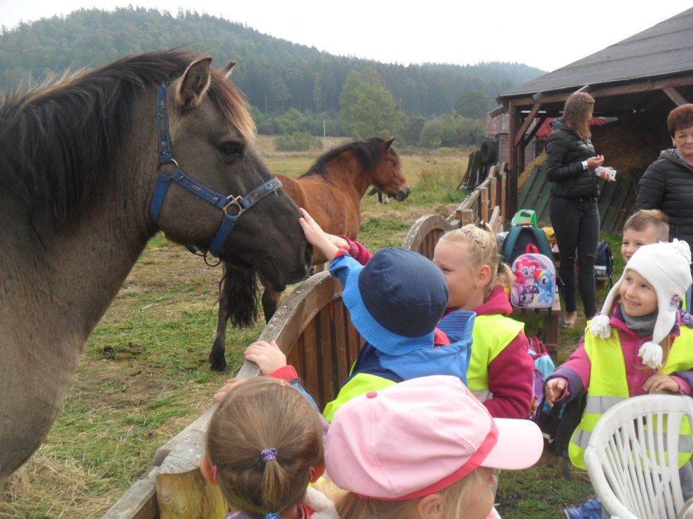 Grupa Tańczące Nutki dnia 28.09. 2016 odwiedziła Kucykowo. Ognisko, pieczone kiełbaski i śniadanie na świeżym powietrzu wszystkim się podobały. Dzieci miały okazję, dzięki uprzejmości gospodarzy ośrodka, pojeździć na konikach, poobserwować ich zachowanie i je pogłaskać. Oprócz tego można było pobawić się w piaskownicy, pohuśtać, pograć i poćwiczyć. Pogoda i humory dopisały zarówno dzieciom jak i towarzyszącym im mamusiom.