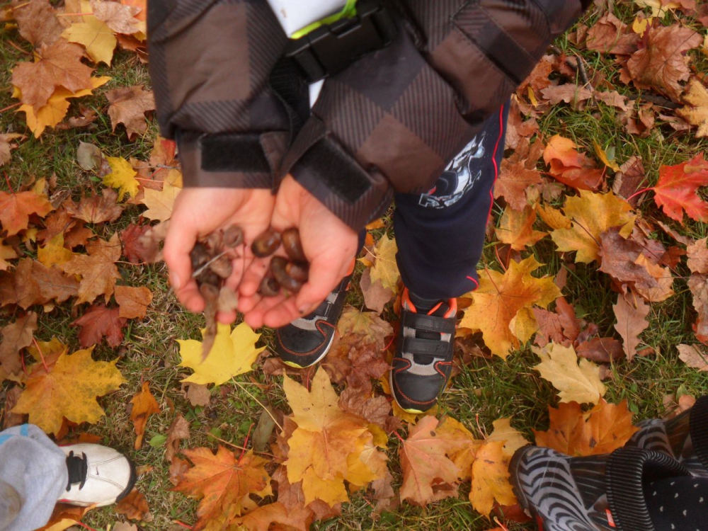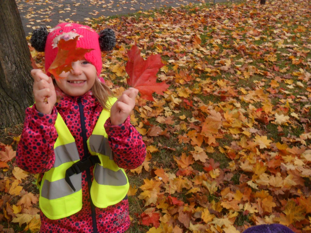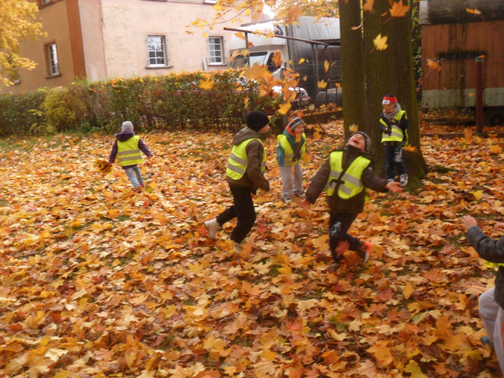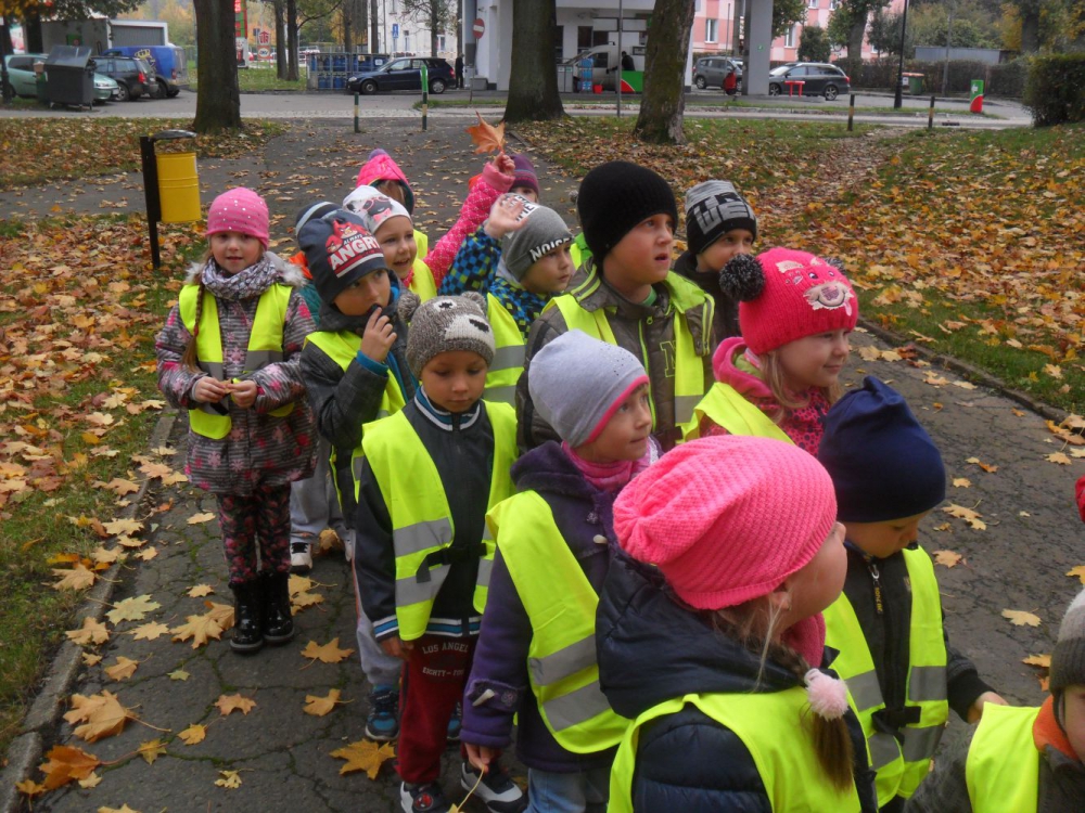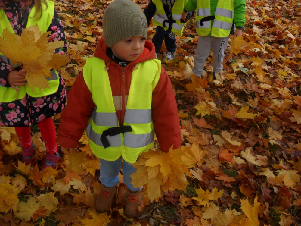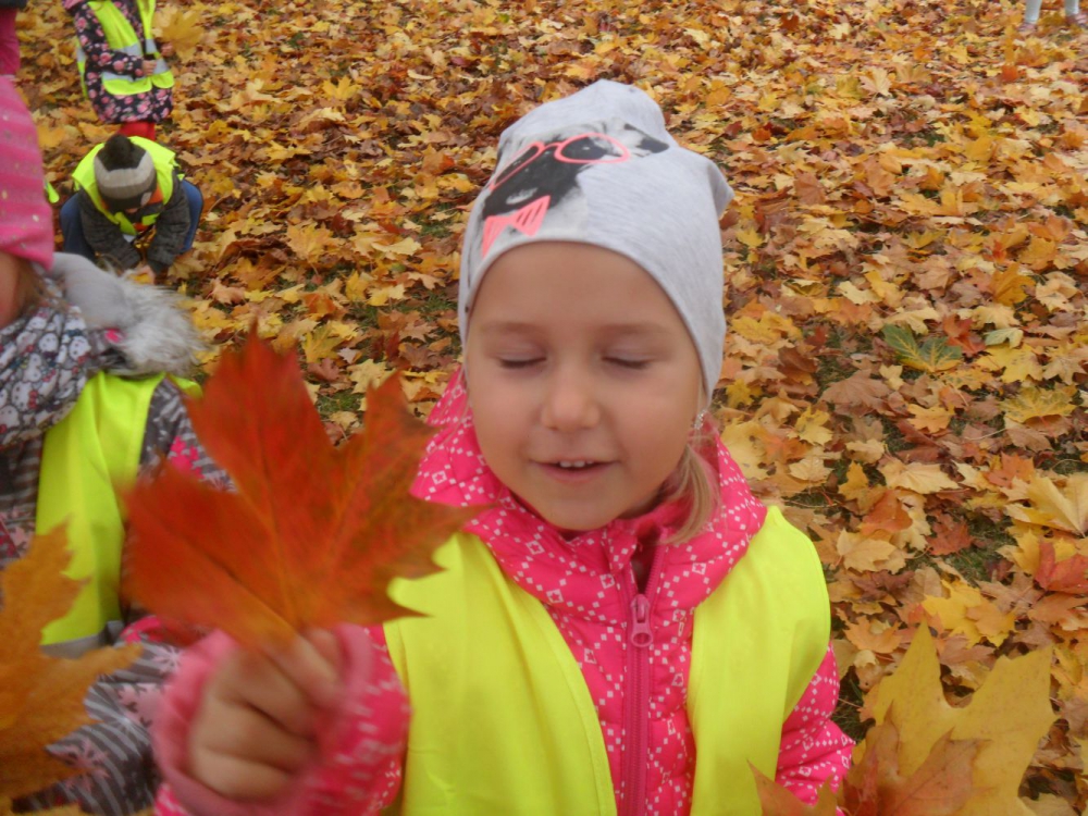 Dzieci z grupy Wesołe Bąki i Krasnoludki były na spacerze w parku "Watra". Obserwowały zmiany zachodzące w przyrodzie. Zbierały dary jesieni, rozpoznawały liście po kształtach i określały ich kolory. Dużą radość sprawiała dzieciom zabawa w "spadające liście". Przedszkolaki przytulały się do drzew aby pozyskać siły witalne i energię na pozostałą część dnia. Zrelaksowane i szczęśliwe powróciły do przedszkola.