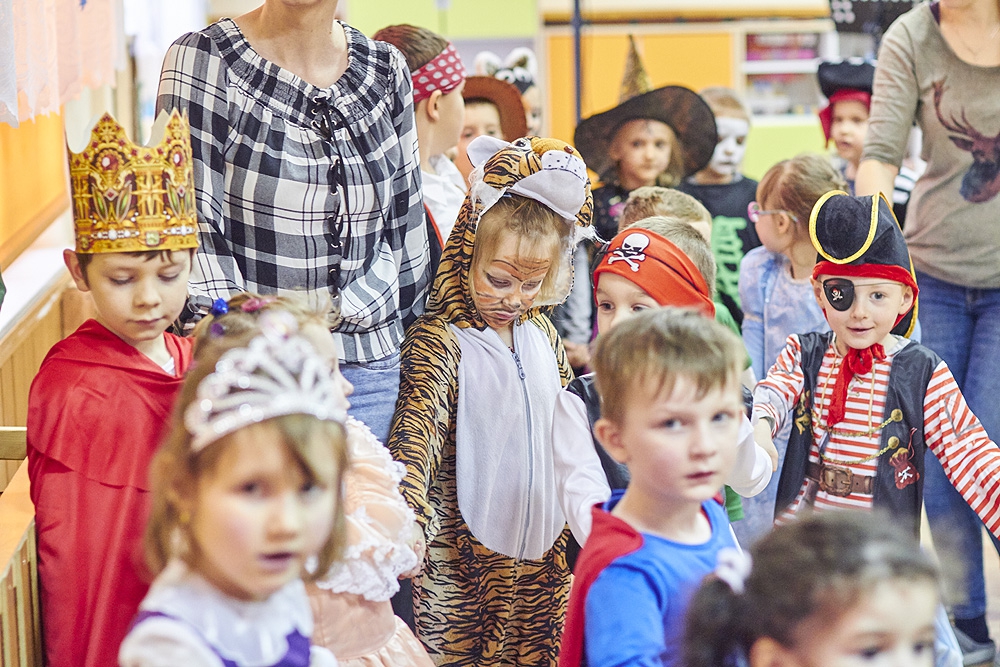 Jak co roku w karnawale w naszym przedszkolu odbył się oczekiwany przez dzieci "Bal przebierańców". Pomysłowość rodziców nie miała granic. Przygotowali oni dla swoich pociech ciekawe stroje . Na balu, więc obok księżniczek, wróżek, policjantów, piratów czy żołnierzy pojawiły się postaci z ulubionych bajek: Elza i Anna z "Krainy Lodu", Hulk, Superman, Spiderman i wiele innych. Po wielkiej prezentacji strojów rozpoczęły się tańce, przy rytmach wesołej muzyki. Były one przeplatane zabawami i korowodami. Dzieci bawiły się wesoło, każdy mógł zatańczyć jak najbardziej wymyślne tańce przy pięknej muzyce. Taka zabawa odbywa się w naszym przedszkolu co roku i co roku towarzyszą jej niesamowite emocje i niezapomniane przeżycia.