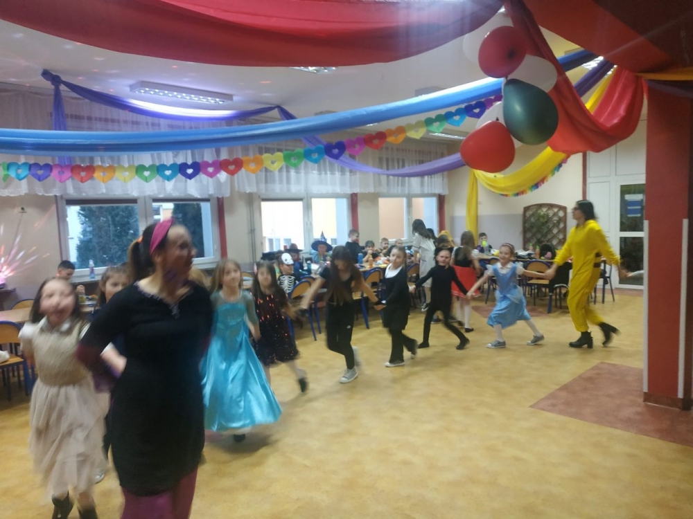 Tuż przed feriami uczniowie klas 1-3 wzięli udział w zabawie kończącej karnawał. Tańcom do znanych utworów towarzyszyły zabawy integracyjne, konkursy, pokazy taneczne. Uczniowie zaprezentowali się w pięknych strojach ulubionych bohaterów i postaci. Wszystkim towarzyszyły dobre humory.