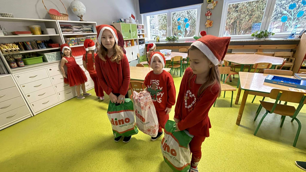 Naszymi Mikołajami z klas 1-8 byli: Igor S., Klara P., Klara K., Karolina Ch., Iga W., Anastazja P. Blanka T., Alicja W., Krystian B., Miłosz W., Mikołaj M., Wojciech Z., Martyna Cz., Lena U., CAŁA KLASA 4A, Fabian P., Hanna M., Łukasz Ch. Nelly K., Jakub K., Wiktoria Sz., Antoni Z., Oliwier Z., Paula P., Iga K., Jan A., Hubert W., Nadia P., Oskar R?
