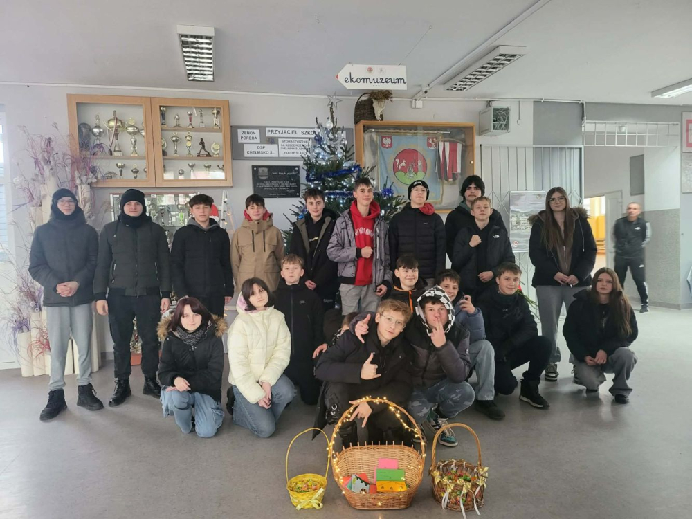 W dniu 16 grudnia 2025r. uczniowie klasy 8a na ulicach Chełmska Śląskiego składali życzenia świąteczne mieszkańcom naszej miejscowości, rozdając samodzielnie przygotowane i ozdobione kartki z życzeniami świątecznymi w języku polskim, angielskim i niemieckim oraz częstując słodyczami.