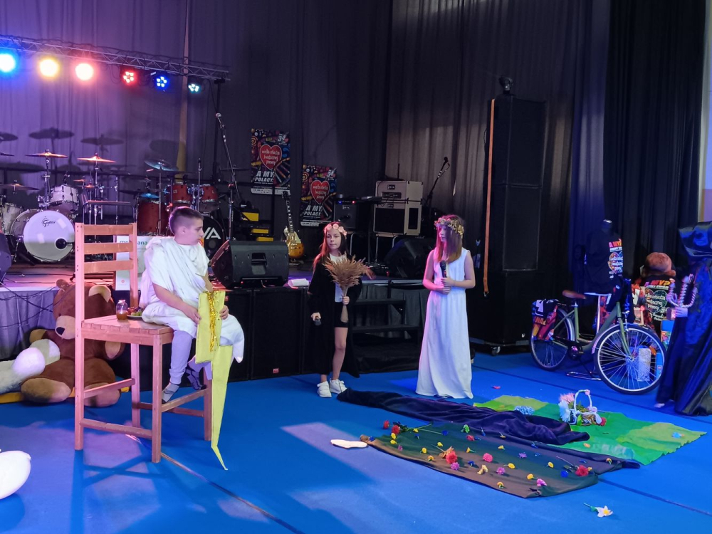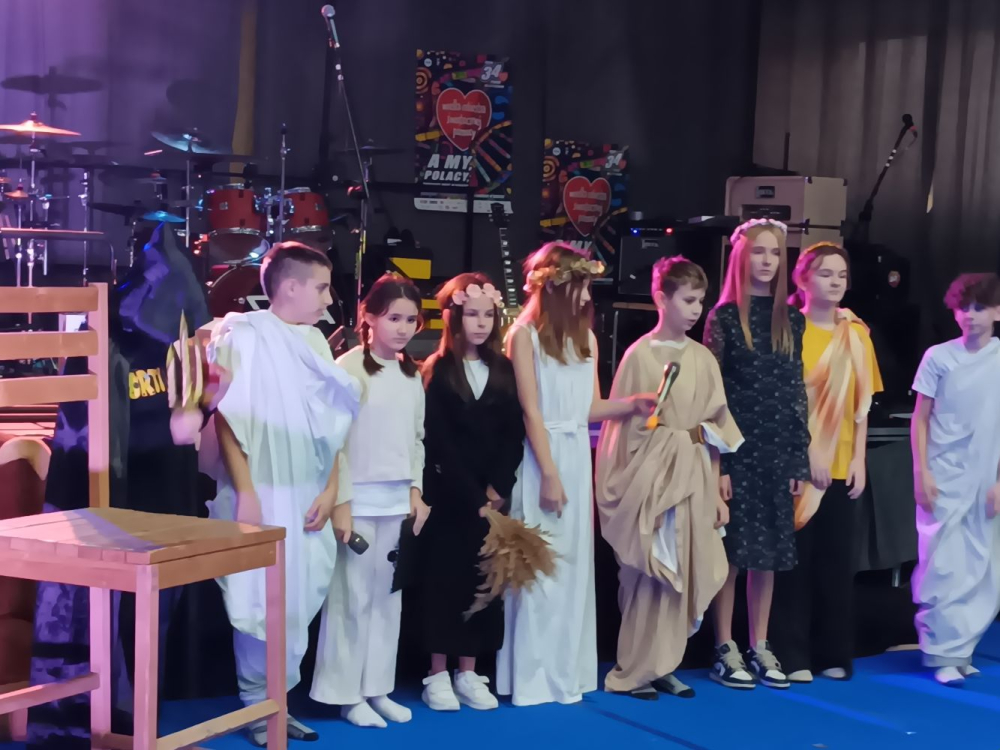 Podczas 34. Finału Wielkiej Orkiestry Świątecznej Pomocy uczniowie z klasy 5b oraz 4a- Zuzia, Nelly, Paulina, Monika, Oliwia, Marcin, Olivier, Jakub S., Jakub K.- wystawili przedstawienie pt. "Demeter i Kora". Dzieci przygotowały inscenizację na podstawie mitu, który wyjaśniał powstawanie pór roku i podkreślał nierozerwalną więź matki z córką. Mit opowiadał o porwaniu córki Demeter przez Hadesa, co doprowadziło do rozpaczy bogini urodzaju, która spowodowała klęskę żywiołową na Ziemi. Ostatecznie Zeus zdecydował, że Persefona dziewięć miesięcy będzie spędzała z matką, a trzy z mężem. Łączyło się to ze zmianą pór roku: kiedy powracała do matki, nastawała wiosna, a gdy wracała do krainy podziemia, rozpoczynał się okres zimowy.