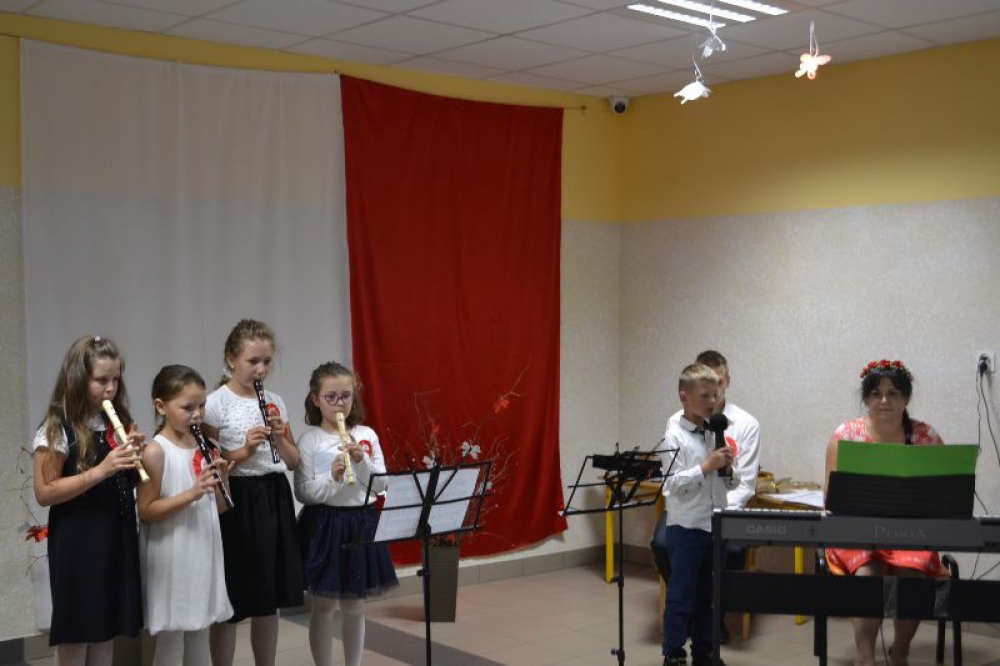 Dziś (14.06.2018 r) nauczyciele i uczniowie edukacji wczesnoszkolnej zaproszeni zostali do wysłuchania koncertu przygotowanego z okazji 100 - lecia odzyskania niepodległości. Koncert "Dla Niepodległej" przygotowali uczniowie uczęszczający w ciągu roku szkolnego na zajęcia kółka muzycznego. Gościnnie wystąpił uczeń klasy 2 a gimnazjum - Maciej Lubos. Młodzi artyści zaśpiewali utwory patriotyczne, wykorzystali akompaniament instrumentów perkusyjnych, zagrali na fletach prostych. Koncertu wysłuchała również pani burmistrz Ewa Kocemba, pan dyrektor Arkadiusz Rzepka, pani wicedyrektor Ewa Telega i pani pedagog Marzena Sieradzka. Do koncertu artystów przygotowała Magdalena Kaczmarczyk.