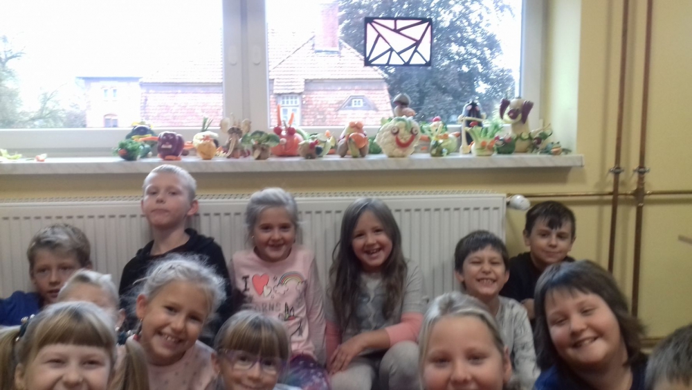 W poniedziałek 8 pażdziernika klasa 2b na zajęciach z techniki wykonała stworki z warzyw. Dzieciaki wykazały się orginalnością, twórczą inwencją i znakomitym wykonaniem stworków według własnego pomysłu. W galerii zdjęć można zobaczyć ich prace oraz same dzieci-radosne i dumne z wykonanej samodzielnie pracy. Aby tak dalej dzieciaki!