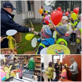 Szliśmy ulicami miasta z żółtymi, ,,lizakami" wręczając wszystkim przypadkowym przechodniom odznaki i cukierki. Odwiedziliśmy również Policję, Urząd Miasta, bank i MOPS.