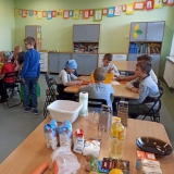 Wspólna praca w kuchni to świetna zabawa, a samodzielnie wykonane wypieki smakują jak żadne inne. Dziś przekonali się o tym uczniowie klasy III b piekąc marchewkowe babeczki. Zajęcia rozpoczęły się od zapoznania z przepisem. W grupach z pomocą pani Elżbiety Sarzyńskiej i wychowawczyni Magdaleny Legutko-Bizoń dzieci obierały i tarły marchewkę, odmierzały i mieszały składniki, nakładały ciasto do papierowych foremek. Podczas wspólnej kulinarnej przygody uczniowie odkryli, że skorupka jajka jest bardzo, ale to bardzo krucha, a olej baaardzo śliski. Nadszedł czas na słodki poczęstunek, na który wszyscy czekali z niecierpliwością. Dzieci były z siebie dumne. Babeczki znikały w oka mgnieniu, pozostały tylko ????okruszki. Zapach rozszedł się po całej szkole, więc niektórzy mogli osobiście sprawdzić czy smakują równie dobrze jak pachną. Warto nauczyć dzieci, że słodycze to nie codzienny posiłek. Do naszych zdrowych przekąsek warto wykorzystać owoce i warzywa. Co ważne - należy pamiętać, że takich słodyczy nie można jeść bez ograniczeń. To zdrowe przekąski, zdrowe słodycze, ale to nadal słodycze. Pyszna zabawa, walory edukacyjne i kulinarne to doskonały pomysł na twórcze spędzenie czasu z dzieckiem do czego zachęcamy wszystkich rodziców.