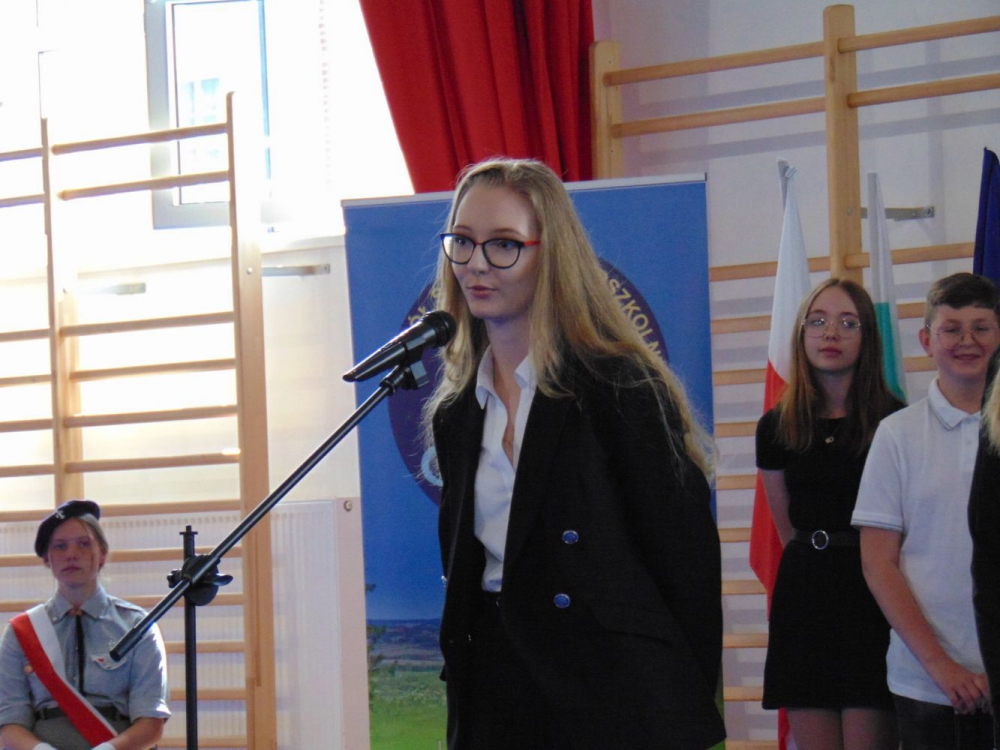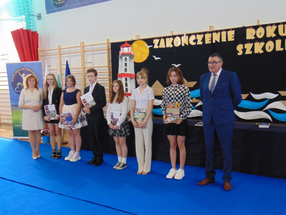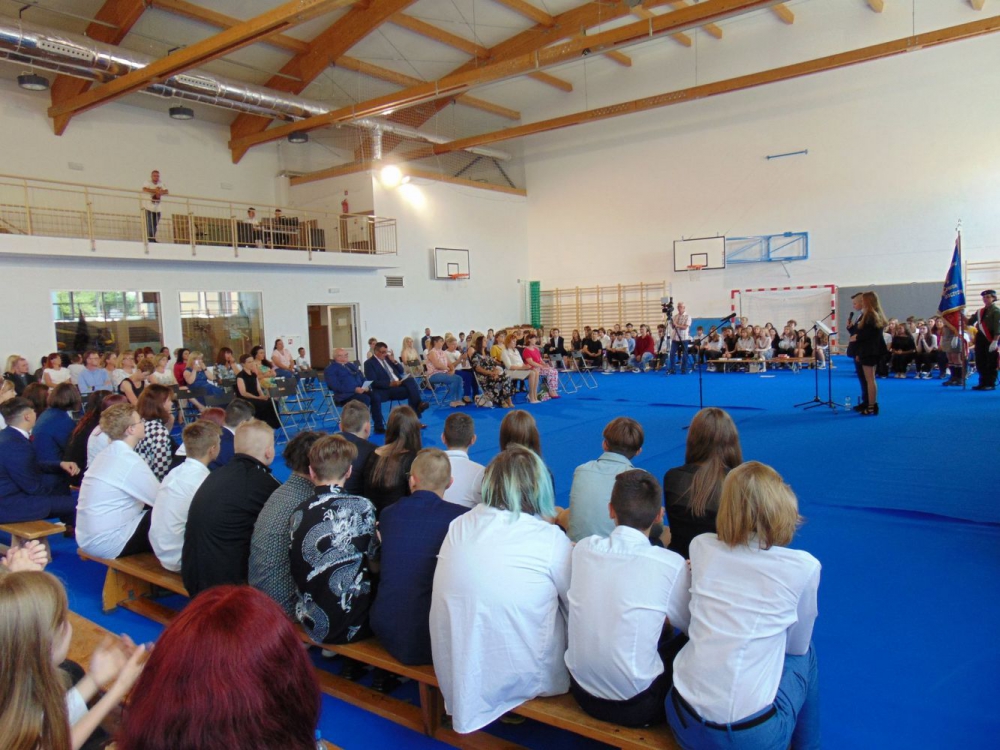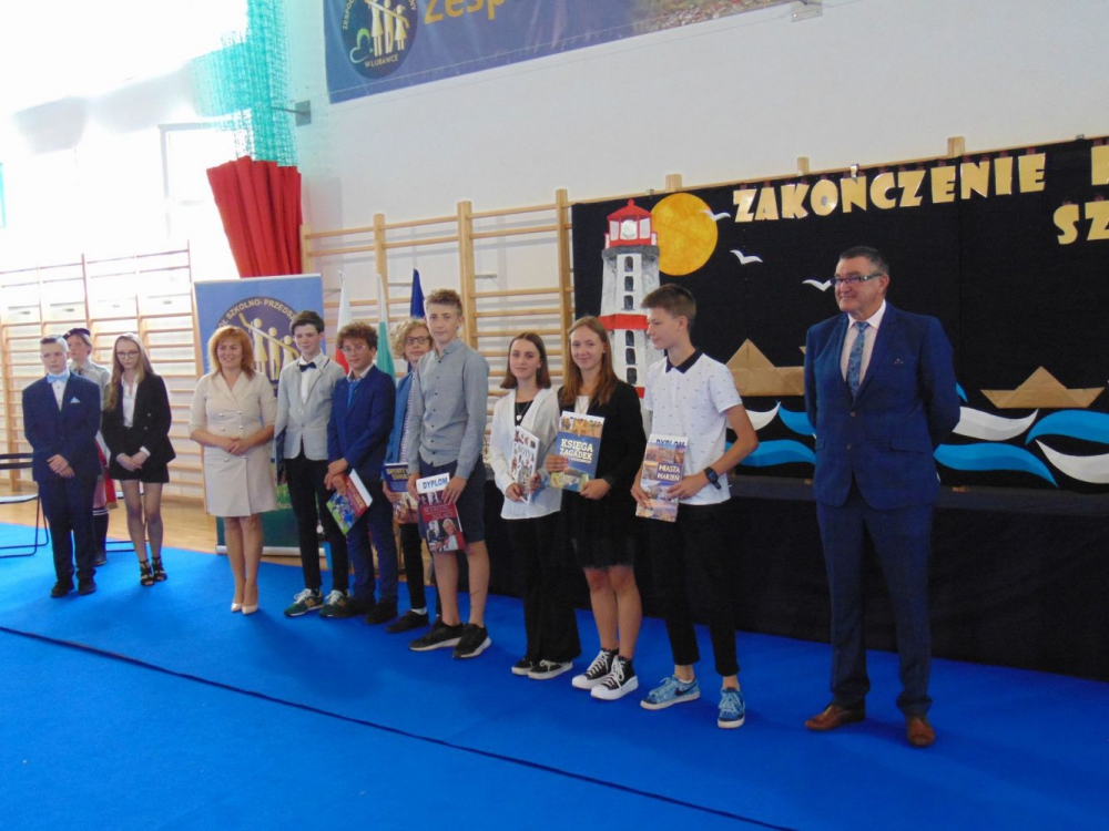 Za nami zakończenia roku szkolnego klas VII - VIII, które odbyło się w sali gimnastycznej naszej szkoły o godzinie 12. Podczas uroczystości nagrody i dyplomy otrzymali uczniowie, którzy mieli najwyższe osiągnięcia dydaktyczne oraz laureaci konkursów. Zgromadzeni mieli okazję zobaczyć też wzruszający występ artystyczny, który przygotowali uczniowie klas VIII. Na szczególną uwagę zasługiwał solowy występ uczennicy Zuzanny Bukowskiej. Podczas uroczystości pożegnaliśmy również księdza Piotra, który odchodzi do innej parafii.