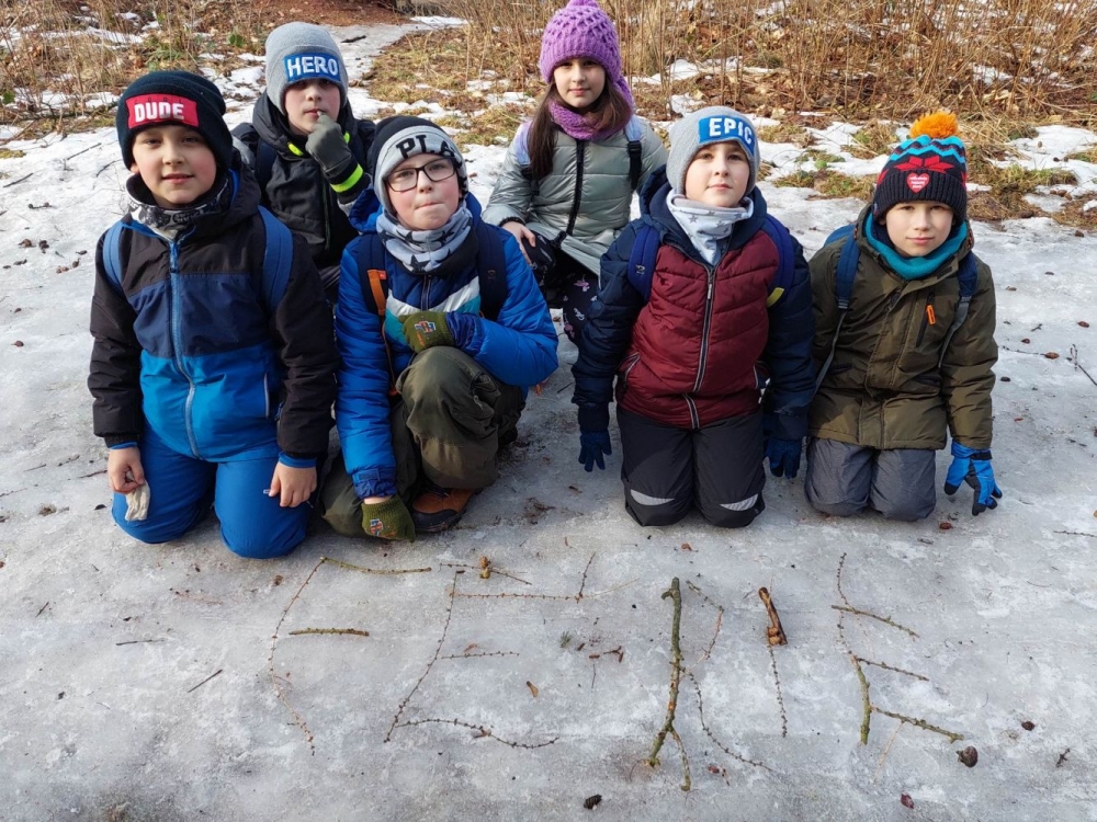 W poszukiwaniu śniegu udaliśmy się na długi spacer. Niestety śniegu znaleźliśmy niewiele, ale zabawa była wspaniała. Tropiliśmy również zwierzęta oraz szukaliśmy oznak wiosny. Zajęcia prowadziła Pani Marzena Król.