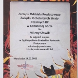 Dziś (24.03.2023 r ) w Marciszowie odbył się Powiatowy Etap Turnieju Wiedzy Pożarniczej 2023. Naszą szkołę reprezentowało pięcioro uczniów: Milena Słowik, Eliza Kołodziej, Weronika Łomnicka, Maciej Lubos i Artur Bukowski. Podczas turnieju zostały również wręczone nagrody dla uczniów biorących udział w Ogólnopolskim Strażackim Konkursie Plastycznym. W etapie powiatowym Milena Słowik zajęła I miejsce, natomiast w etapie wojewódzkim III miejsce. Natomiast Sylwia Bakun w etapie powiatowym zajęła IV miejsce, a w wojewódzkim otrzymała wyróżnienie. Uczennicom gratulujemy i trzymamy kciuki za dalsze sukcesy.