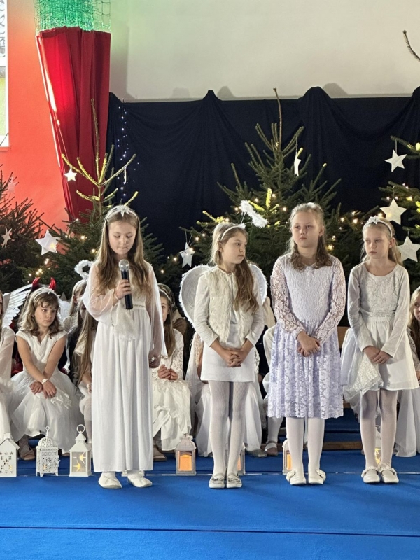 Święta Bożego Narodzenia to wyjątkowy i magiczny czas. O taką świąteczną atmosferę zadbali w tym roku uczniowie z klas 3a i 2b. Zaprezentowali Jasełka bożonarodzeniowe pt. ?Była noc??. Podczas występu dzieci przedstawiły swoją opowieść o narodzinach Jezusa. Piękna scenografia nawiązująca do Betlejem była idealnym dopełnieniem całego przedstawienia. Mali artyści występowali z dużym przejęciem i zaangażowaniem. Za swój profesjonalny występ otrzymali gromkie brawa od publiczności oraz wyrazy uznania. Wielkie podziękowania dla Rodziców uczniów i wszystkich osób zaangażowanych. Całość przygotowały Panie: Wiesława Jarzmik, Magdalena Legutko-Bizoń, Elżbieta Sarzyńska oraz Beata Godla.