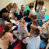 Dzień 8 luty 2024 roku dla najmłodszych uczniów i uczennic naszej szkoły stał się początkiem niesamowitej przygody jaką jest czytanie książek. Wszyscy pierwszoklasiści zostali pasowani na czytelników naszej biblioteki. W trakcie uroczystości dzieci wysłuchały bajki o "Tchórzliwej muszce i molu książkowym", poznały kodeks młodego czytelnika oraz rozwiązywały w grupach zagadki czytelnicze. Na pamiątkę dzisiejszego wydarzenia każde dziecko otrzymało imienną zakładkę do książki, a w związku z przypadającym dzisiaj "tłustym czwartkiem" na deser każdy dostał słodkiego pączka. Uroczystość przygotowały Panie: Magdalena Czuba, Monika Sobczak, Karolina Nowicka. Pomogły w realizacji Pani Angelika Powązka oraz Pani Dyrektor Ewa Telega.