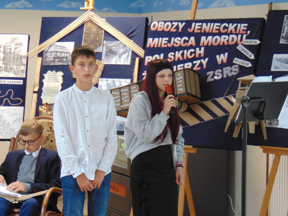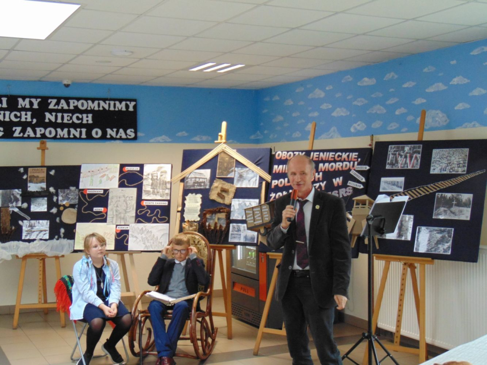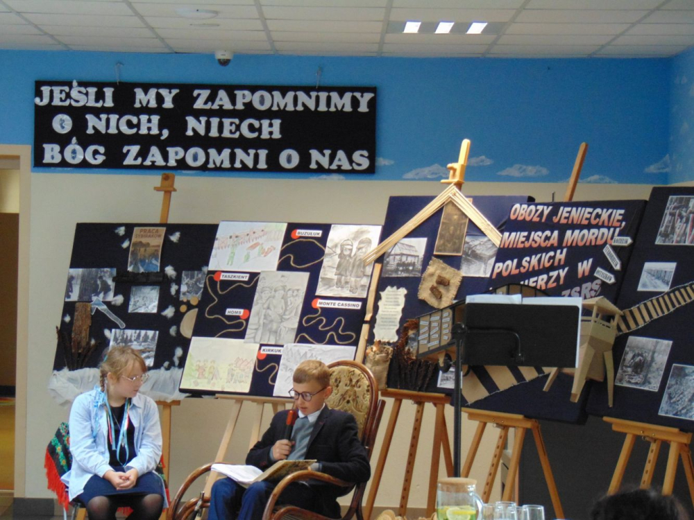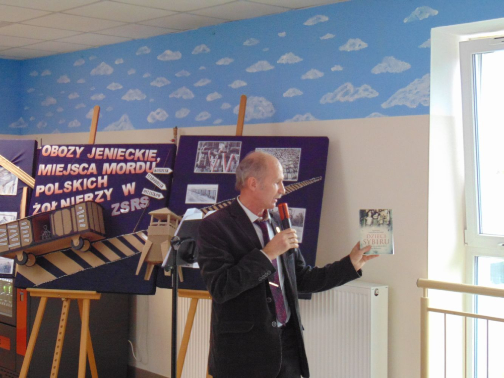 W godzinach popołudniowych w szkole sie uroczyste spotkanie z charakterystycznymi gośćmi: Panem Wacławem Kwiecińskim oraz Panem Alfredem Nowickim, którzy przybliżyli zebranym historię Sybiraków.