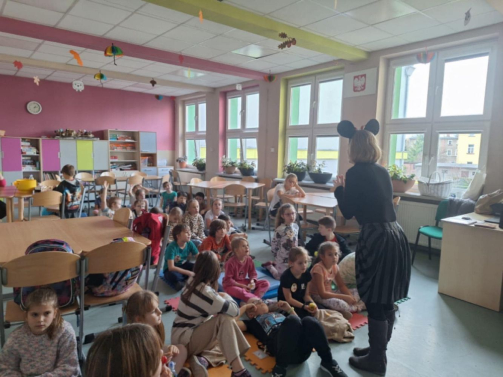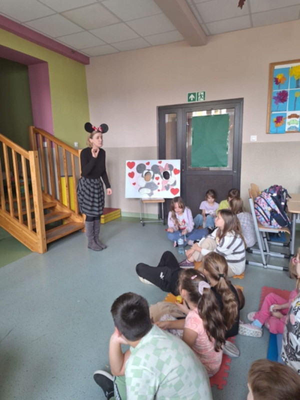 Dzisiaj w świetlicy szkolnej obchodziliśmy Międzynarodowy Dzień Myszki Miki. Z tej okazji dzieci wysłuchały krótką historię powstania Myszki Miki, obejrzały bajkę oraz wzięły udział w quizie. Na zakończenie zajęć wykonały pracę plastyczną i otrzymały słodki poczęstunek.