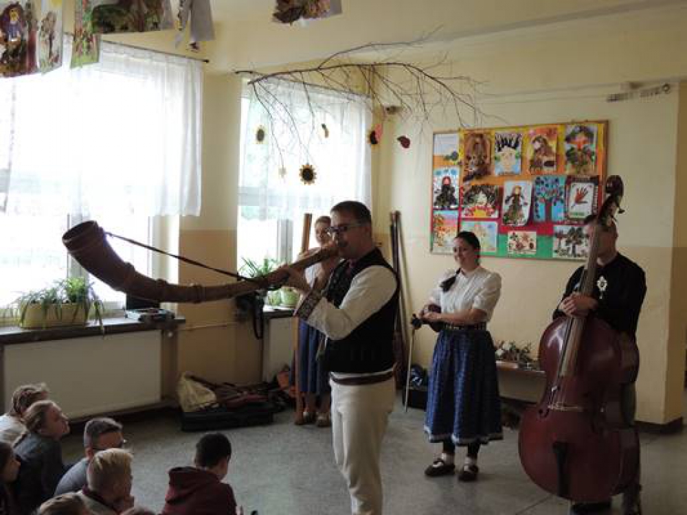 Nieczęsto spotykane instrumenty muzyczne, żywiołowa muzyka i pieśni - tak wyglądała dzisiejsza (03.11.2016 r) audycja muzyczna, w której wzięli udział uczniowie naszej szkoły. Z muzyką góralską przyjechali do nas muzycy z okolic Koniakowa i Istebnej. Zaprezentowali również obyczaje związane z tamtym regionem oraz tradycyjne stroje. Niektórzy uczniowie mieli również okazję nauczyć się tańca góralskiego.