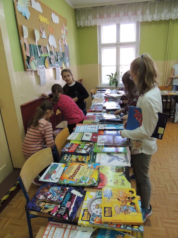 Bardzo dużym zainteresowaniem cieszył się Kiermasz Taniej Książki, który zorganizowany został przez szkolne koło biblioteczne oraz panią Edytę Kogut. Przekrój tematyczny książek był bardzo różnorodny: od bajek do przeróżnych albumów tematycznych. Ceny najtańszych książek zaczynały się już od 2 zł.