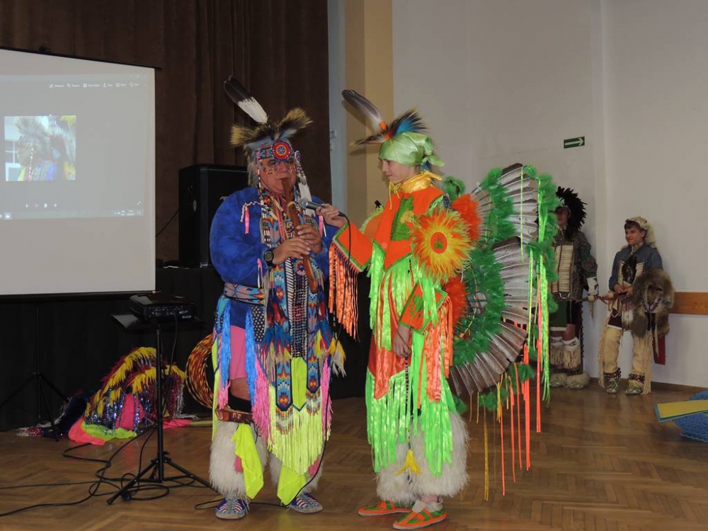 W niezwykłym spotkaniu mieli szansę wziąć wczoraj (10.04.2017 r) uczniowie naszej szkoły. W domu kultury odbyło się spotkanie z Robertem Soto Indianinem z Plemienia Apache Lipan z Teksasu, któremu towarzyszyła grupa Rise of the Sun z Lubawki. Podczas spotkania mogliśmy się wiele dowiedzieć o kulturze i życiu tego plemienia oraz bohatera spotkania. Mieliśmy również okazję wysłuchać pieśni apackiej, gry na flecie oraz zobaczyć trzy tańce: międzyplemienny, taniec orła i taniec hoop dance. Dowiedzieliśmy się także, że jego plemię nie mieszkało w tipi tylko w wickupach. Na koniec spotkania chętni mogli zadać pytania dotyczące życia Apaczów. Roberto Soto pojawił się w naszym mieście na zaproszenie pana Krzysztofa Jawora i spędził na zwiedzaniu okolicy dwa dni.