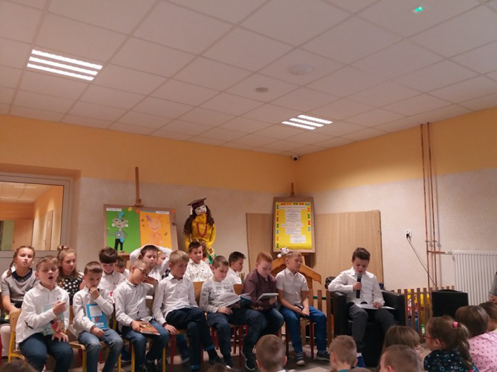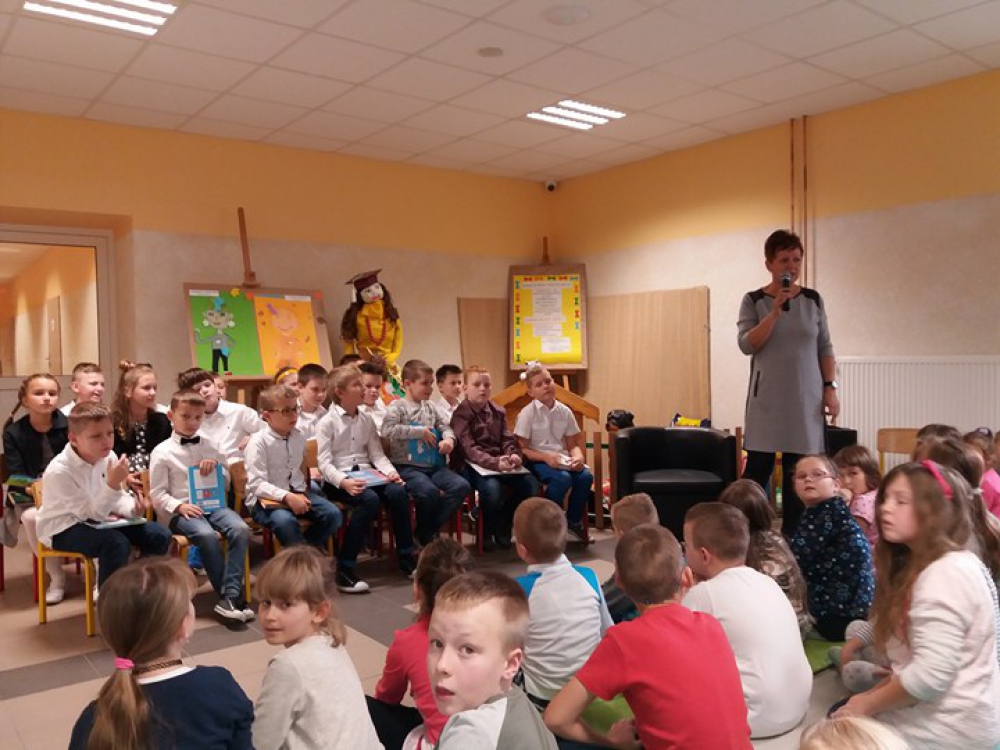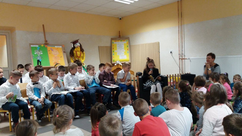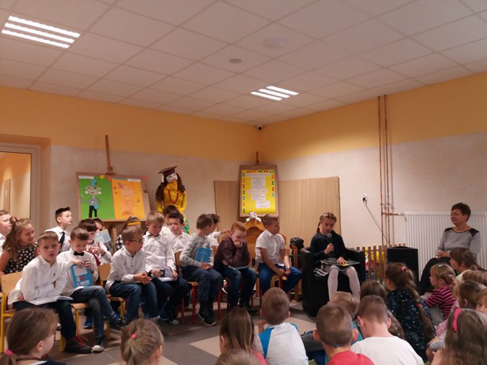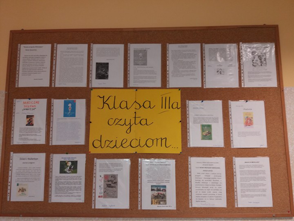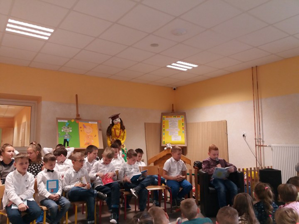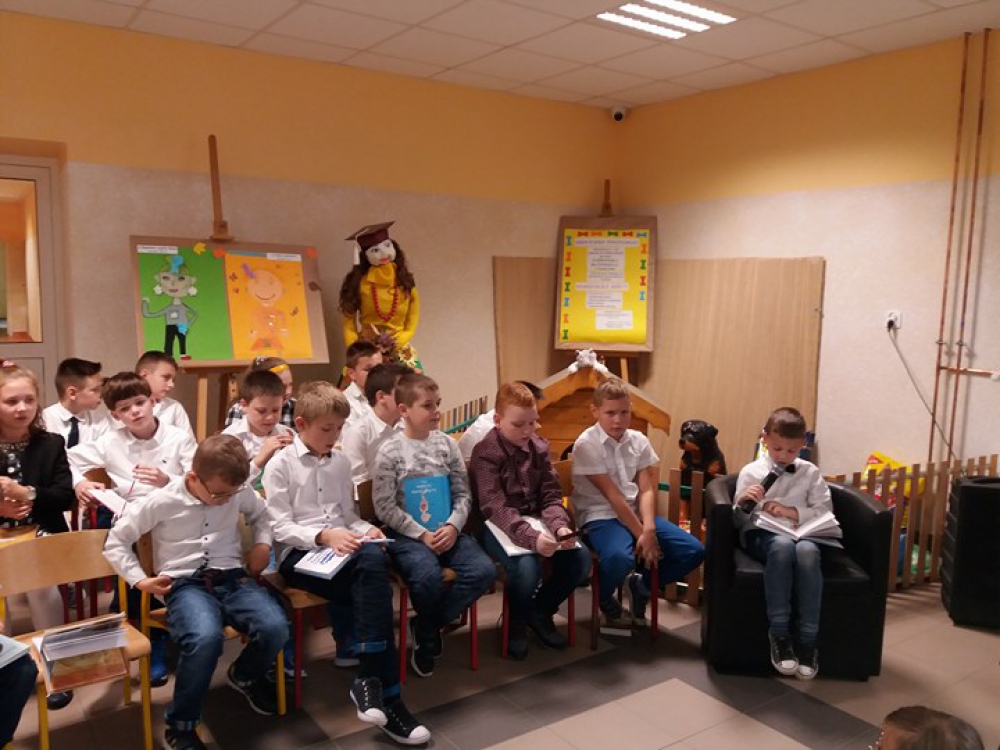 Dziś (26.10.2017 r.) uczniowie klasy III a czytali fragmenty swoich ulubionych książek dla uczniów klasy drugiej i klas trzecich. W celu rozbudzania zainteresowań czytelniczych wśród dzieci, uczniowie klasy III a opracowali recenzje swoich ulubionych książek, a następnie zamieścili je na gazetce szkolnej.