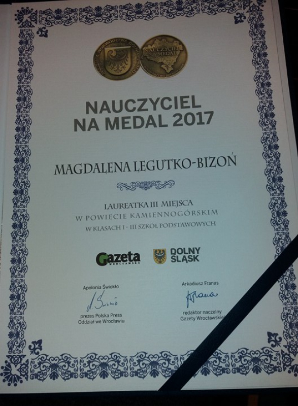 15 grudnia podczas Dolnośląskiego Kongresu Edukacyjnego we Wrocławiu odbył się finał plebiscytu ,,Nauczyciel na Medal 2017", który był organizowany przez Gazetę Wrocławską pod honorowym patronatem Marszałka Województwa Dolnośląskiego Cezarego Przybylskiego.