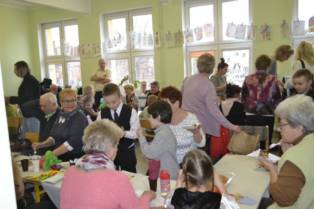 Uczniowie z klasy 1a zaprosili swoich dziadków na uroczystość przygotowaną z okazji ich święta. Dzieci wystąpiły w teatrzyku "Jaś i Małgosia", recytowały wiersze i zaśpiewały piosenkę. Występom dzieci przyglądał się również pan dyrektor Arkadiusz Rzepka i pani wicedyrektor Ewa Telega. Dziadkowie otrzymali upominki od swoich wnucząt, a po przedstawieniu zaproszeni zostali na poczęstunek. Uroczystość wraz ze swoimi uczniami przygotowała pani Magdalena Kaczmarczyk.