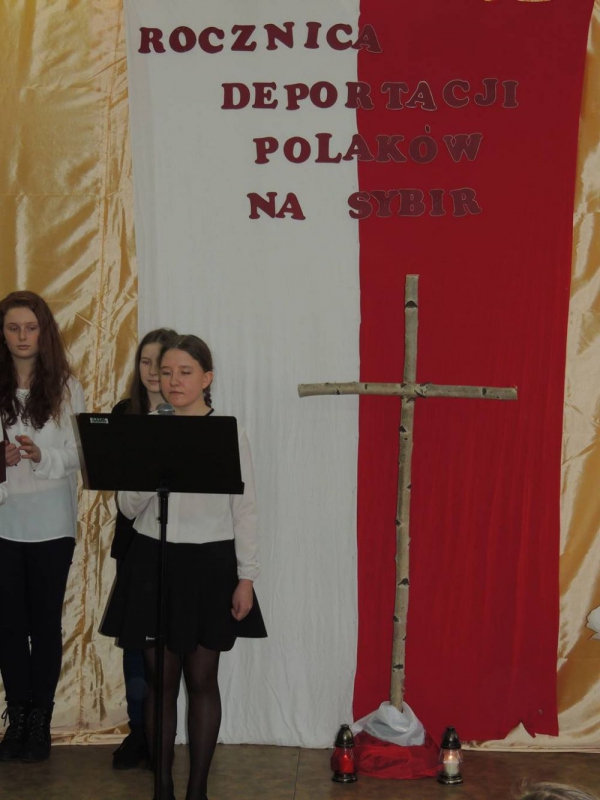 Dziś (13.02.2018r) w naszej szkole odbył się Apel Poległych, który upamiętnił 78 rocznicę II wywózki Polaków na Sybir. Uroczystość miała wyjątkowy charakter, gdyż pojawił się na niej Pan Piotr Aulich - świadek tamtych wydarzeń, który zwrócił się do młodych uczestników spotkania z apelem. Uroczystość przygotowały Panie: Cecylia Błońska i Agnieszka Kasprzyk- Żmudzińska wraz z uczniami: Marcelina Kondoł kl.7a, Emilia Czuba kl. 7a, Weronika Jasińska kl. 7b, Martyna Puławska kl. 7b, Dominika Leśniara kl. 7b, Natalia Rogowska kl. 7b, Oskar Marmuszewski kl. 7b, Natalia Klag kl. 7c, Roksana Czerwińska kl. 7c, Kamil Podobiński klasa 3c G, Maciej Lubos kl. 2a G, Krystian Kucharski kl. 2c G, Dawid Klag kl. 2c G, Marcel Reciak kl. kl. 3c G.
