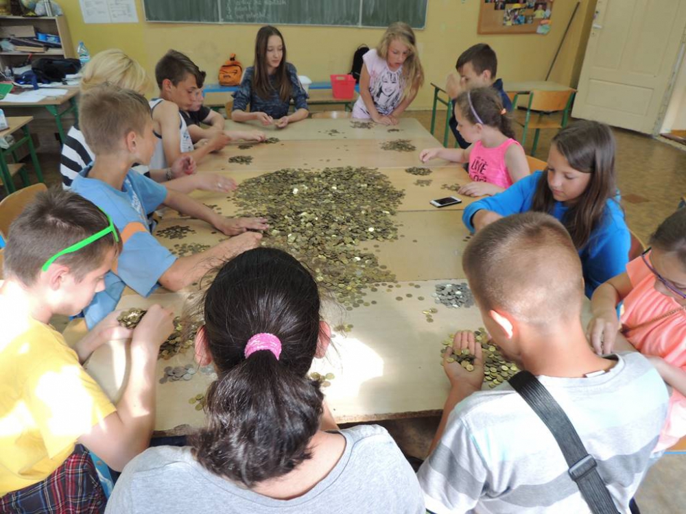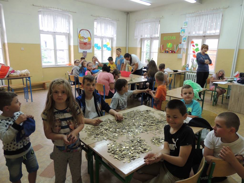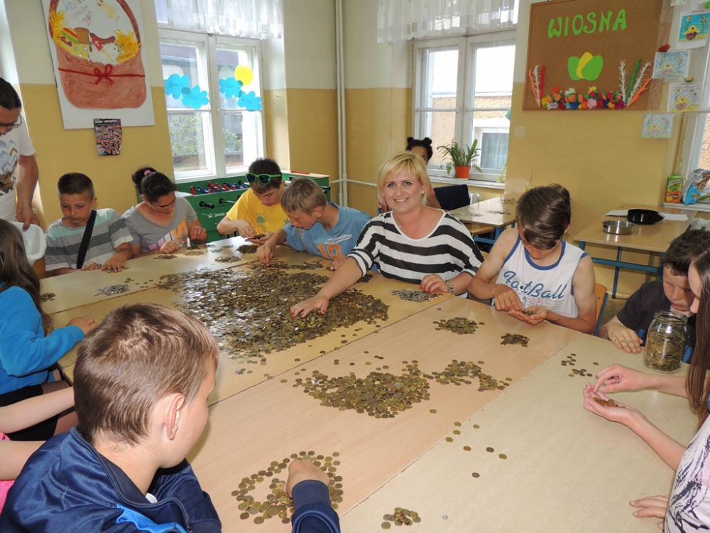 Prawdziwą górę ,,złotych" groszy o nominale 1,2 i 5 groszy zebrali uczniowie klas I - VI naszej szkoły. Jutro ponad 80 kilogramów monet trafi do kamiennogórskiej siedziby PCK - organizatora akcji Złoty Grosik. Wśród klas I - III najwięcej zebarała klasa III e (wych. Magdalena Legutko - Bizoń) - 11,878 kg. Drugie miejsce zajęła klasa I a (wych. Kaczmarczyk Magdalena) - 10,218 kg. Trzecie miejsce zajęła klasa I b (Łazarek Małgorzata) - 5,015 kg. Wśród klas IV - VI zdecydowanie dominowały klasy czwarte. Najwięcej monet zebrała klasa IV a (wych. Klaudia Kurzawa) - 12,191 kg. Dugie miejsce zajęła klasa IV c (wych. Izabela Genera) - 11,391 kg). Trzecie miejsce zajęła klasa IV b (wych. Agnieszka Kasprzyk - Żmudzińska) - 8,759 kg.Wszystkim uczniom serdecznie dziękujemy za hojność. Podziękowania należą się również wychowankom Świetlicy Wsparcia Dziennego w Lubawce, którzy w ramach współpracy ze szkołą segregowali monety. W klasach I - III koordynatorem akcji była pani Magdalena Legutko - Bizoń, w klasach IV -VI pani Krystyna Danilecka, natomiast głównym koordynatorem był pan pedagog Krzysztof Jawor.