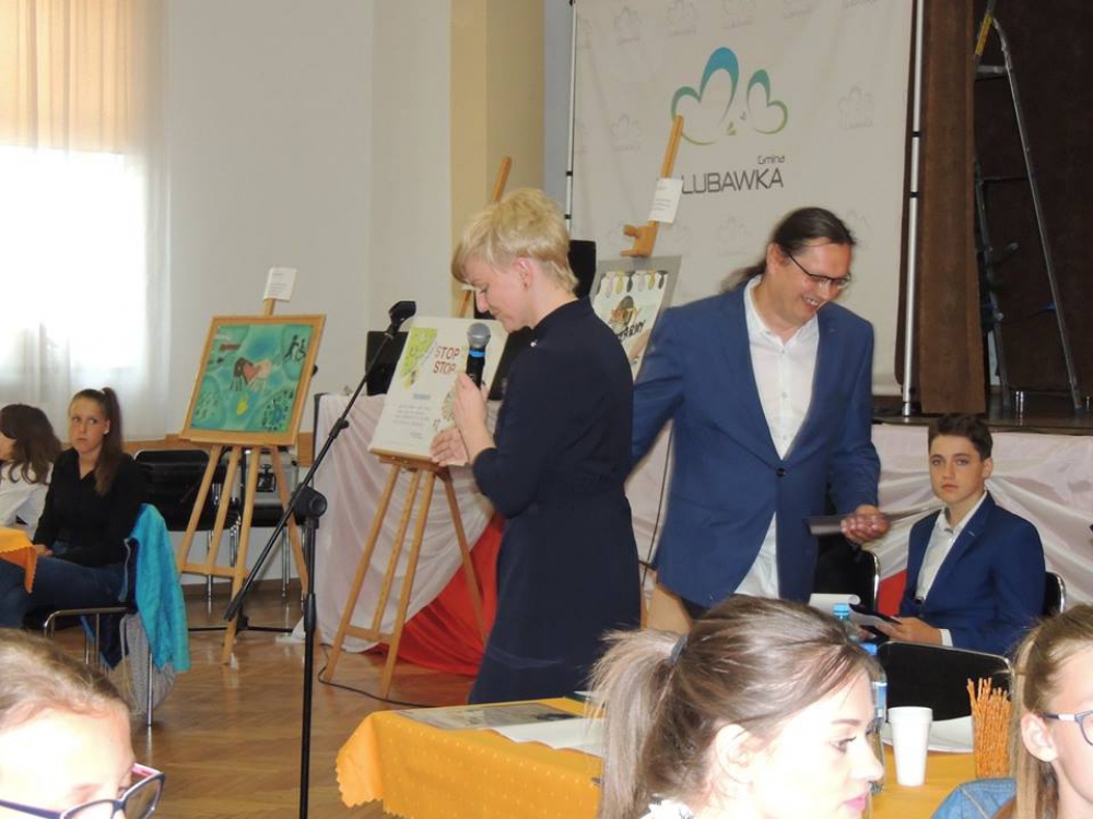 Za nami już finał III Młodzieżowego Forum Bezpieczeństwa, który odbył się dziś (16.05.2018r ) w domu kultury. Tematem tegorocznego forum była TOLERANCJA, a hasło przewodnie brzmiało: TOLERUJĘ, SZANUJĘ, NIE PONIŻAM, AKCEPTUJĘ. Dzisiejszy dzień był podsumowaniem wszystkich działań jakie odbywały się w ramach forum: sondażu ulicznego, warsztatów, konkursów, dni tolerancji itp. Był też nagrodą dla tych wszystkich, którzy brali czynny udział w tych wszystkich działaniach, gdyż mogli zobaczyć efekty swojej pracy. Mieli też okazję wysłuchać osób dorosłych, które na co dzień spotykają się z przejawami nietolerancji i dowiedzieć się jakie oni mają spojrzenie na ten problem. Przed zgromadzonymi zaprezentowali się: pani Magdalena Buczek ? terapeutka z MONARU w Jeleniej Górze, pan Tomasz Lewandowicz ze społeczności Hare Kriszna oraz pan Robert Bladycz ? asystent społeczności romskiej. Wyróżnienia za prace plastyczne otrzymało troje uczniów z naszej szkoły: Agata Filipiak i Salamon Klaudia z klasy VII c oraz Kożuch Seweryn z IV b. Z każdej szkoły jedna osoba miała okazję zaprezentować swoje przemyślenia na temat tolerancji. Naszą szkołę reprezentowała Majka Germata z klasy VI a. Relację na żywo na stronach Facebooka prowadziło dwóch uczniów naszej szkoły: Kacper Biel z VI b i Szymon Sopata z VI a wraz z panem Krzysztofem Jaworem. Na zakończenie Forum przepiękną piosenkę zaśpiewał chór z ZSP w Chełmsku Śląskim pod opieką pana Damiana Skorupińskiego. Wielkie podziękowania za kolejne forum należą się organizatorom czyli Miejsko Gminnemu Ośrodkowi Pomocy Społecznej w Lubawce, a w szczególności koordynatorowi głównemu pani Adzie Poradzie oraz pomysłodawczyni pani Katarzynie Ułanek. Szkolnym koordynatorem był pan pedagog Krzysztof Jawor.
